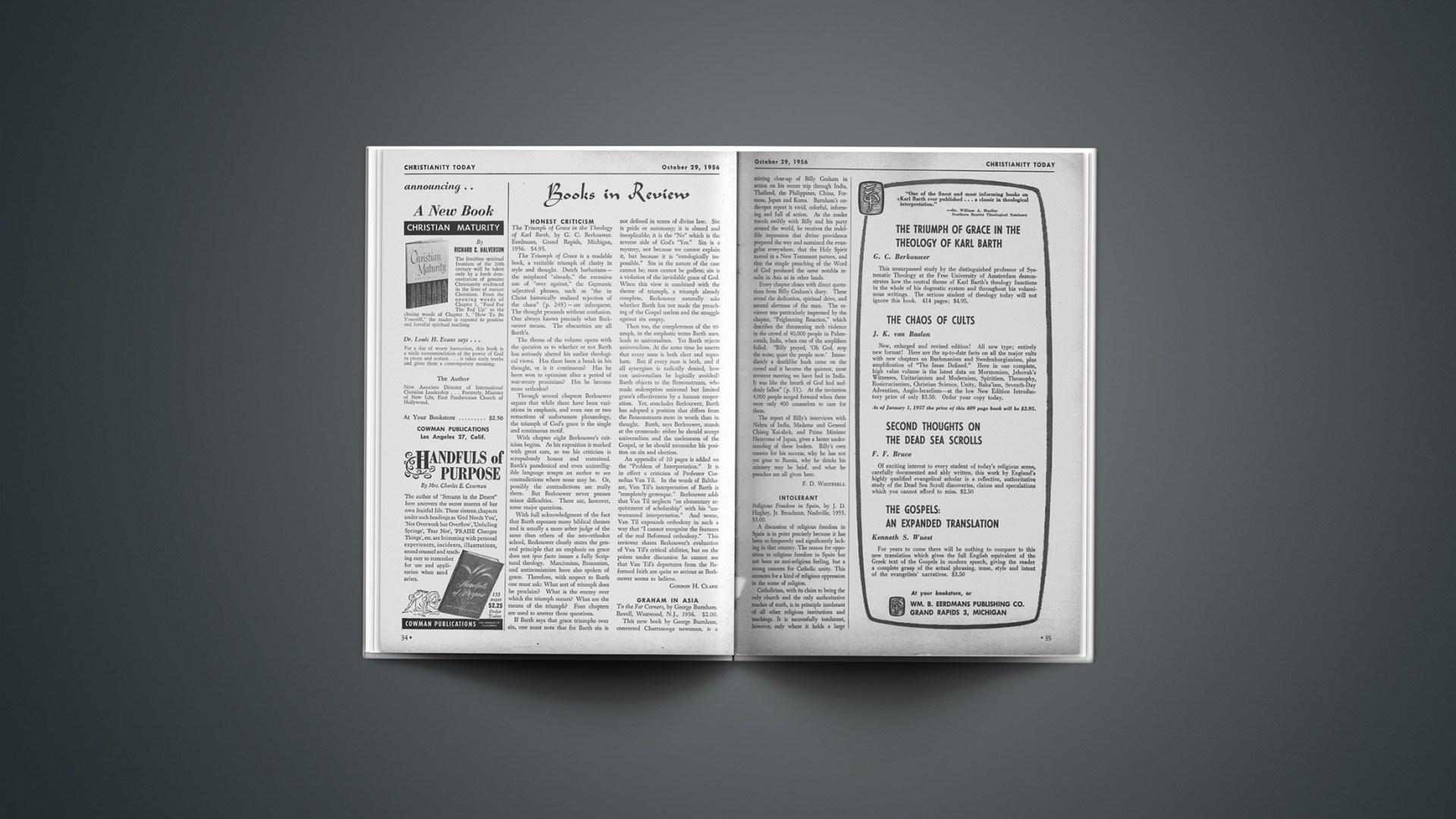 The Triumph of Grace is a readable book, a veritable triumph of clarity in style and thought. Dutch barbarisms—the misplaced “already,” the excessive use of “over against,” the Germanic adjectival phrases, such as “the in Christ historically realized rejection of the chaos” (p. 249)—are infrequent. The thought proceeds without confusion. One always knows precisely what Berkouwer means. The obscurities are all Barth’s.
