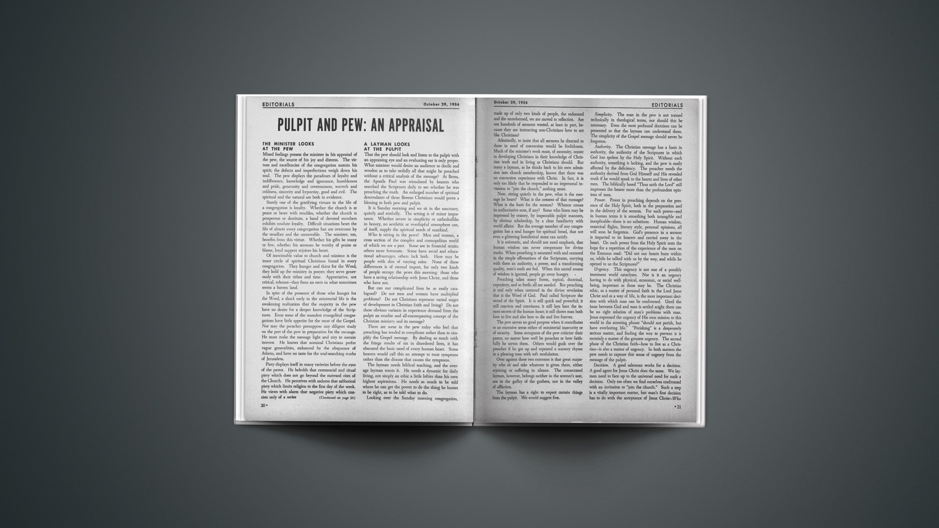 That the pew should look and listen to the pulpit with an appraising eye and an evaluating ear is only proper. What minister would desire an audience so docile and wooden as to take stolidly all that might be preached without a critical analysis of the message? At Berea, the Apostle Paul was stimulated by hearers who searched the Scriptures daily to see whether he was preaching the truth. An enlarged number of spiritual descendants of those Berean Christians would prove a blessing to both pew and pulpit.