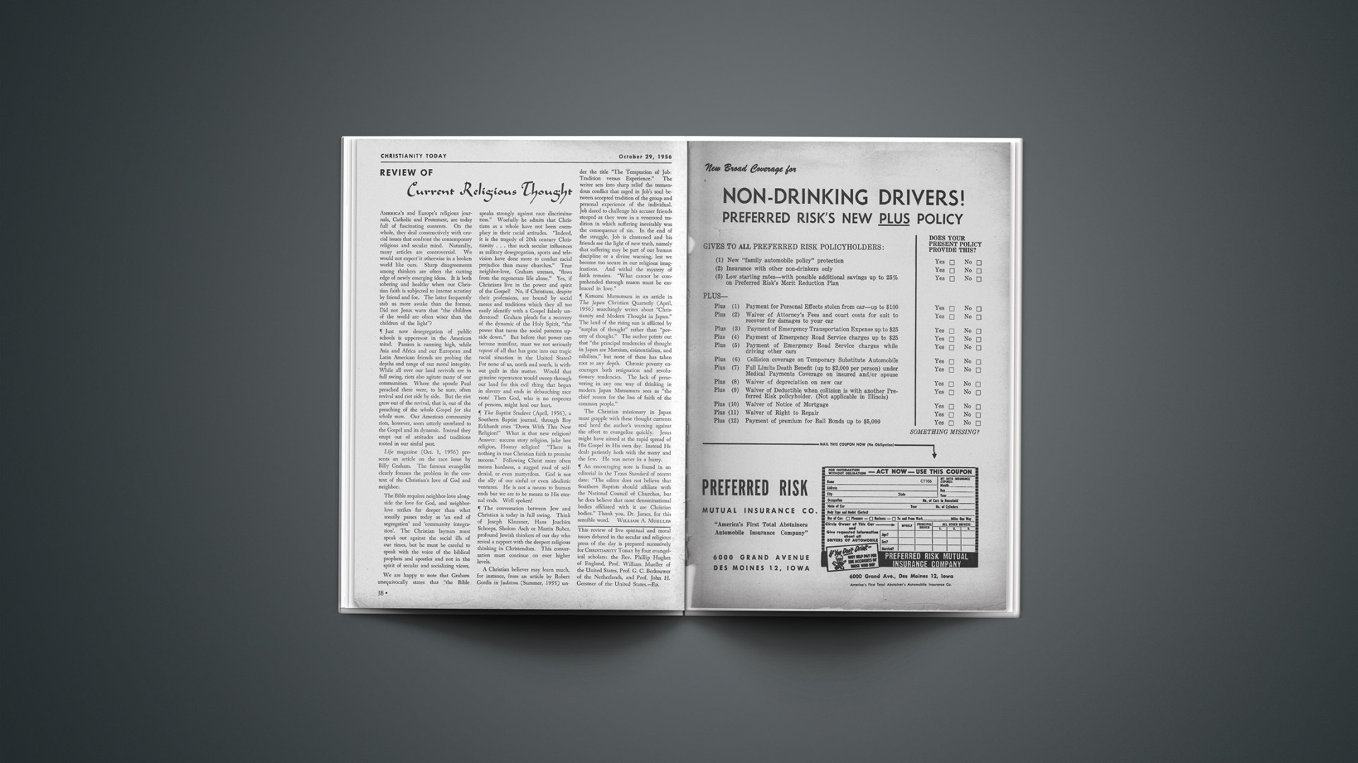 This review of live spiritual and moral issues debated in the secular and religious press of the day is prepared sucessively for CHRISTIANITY TODAY by four evangelical scholars: the Rev. Phillip Hughes of England, Prof. William Mueller of the United States, Prof. G. C. Berkouwer of the Netherlands, and Prof. John H. Gerstner of the United States.—ED.