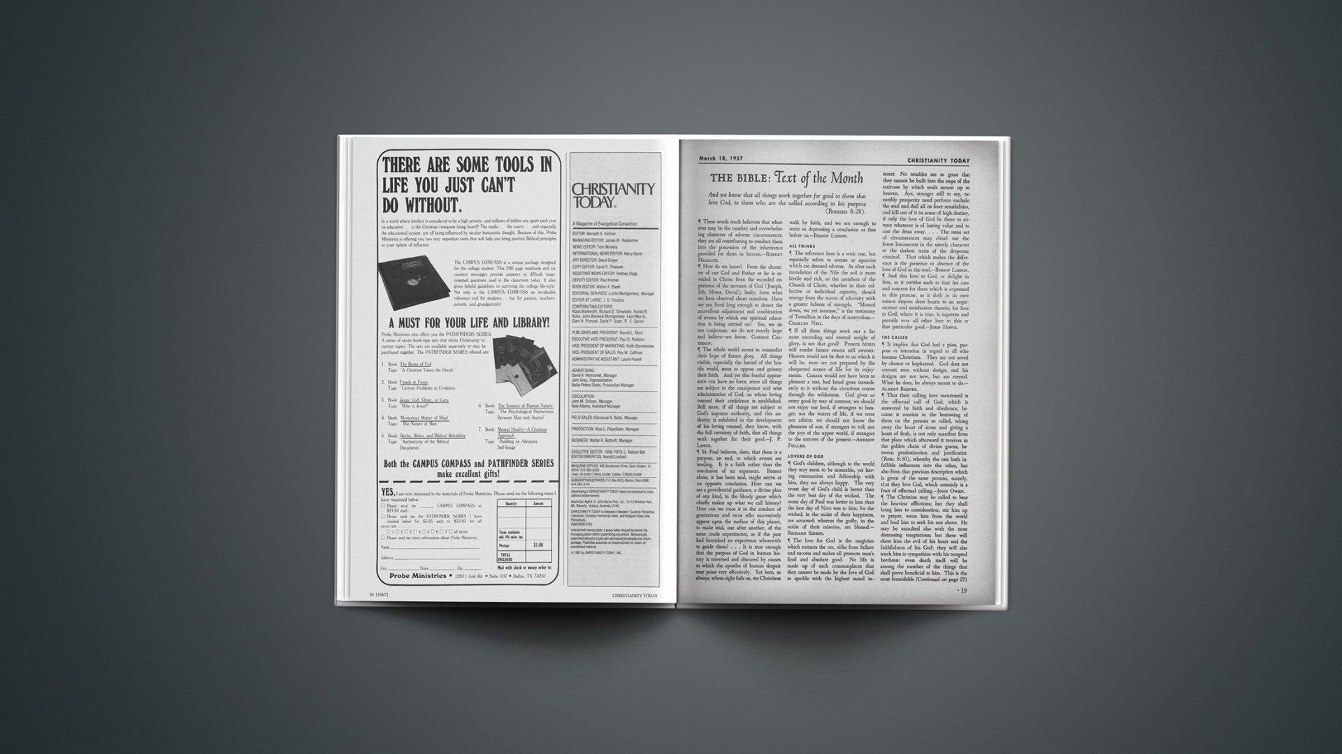 The love for God is the magician which extracts the ore, alike from failure and success and makes all promote man’s final and absolute good. No life is made up of such commonplaces that they cannot be made by the love of God to sparkle with the highest moral interest. No troubles are so great that they cannot be built into the steps of the staircase by which souls mount up to heaven. Aye, stranger still to say, no earthly prosperity need perforce enchain the soul and dull all its finer sensibilities, and kill out of it its sense of high destiny, if only the love of God be there to extract whatever is of lasting value and to cast the dross away.… The same set of circumstances may chisel out the finest lineaments in the saintly character or the darkest traits of the desperate criminal. That which makes the difference is the presence or absence of the love of God in the soul.—BISHOP LIDDON.