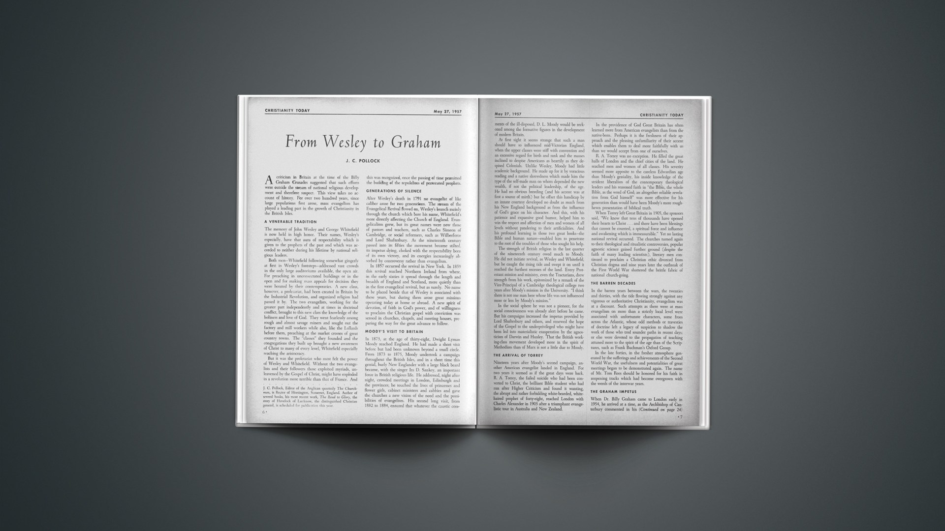 J. C. Pollock, Editor of the Anglican quarterly The Churchman, is Rector of Horsington, Somerset, England. Author of several books, his most recent work, The Road to Glory, the story of Havelock of Lucknow, the distinguished Christian general, is scheduled for publication this year.