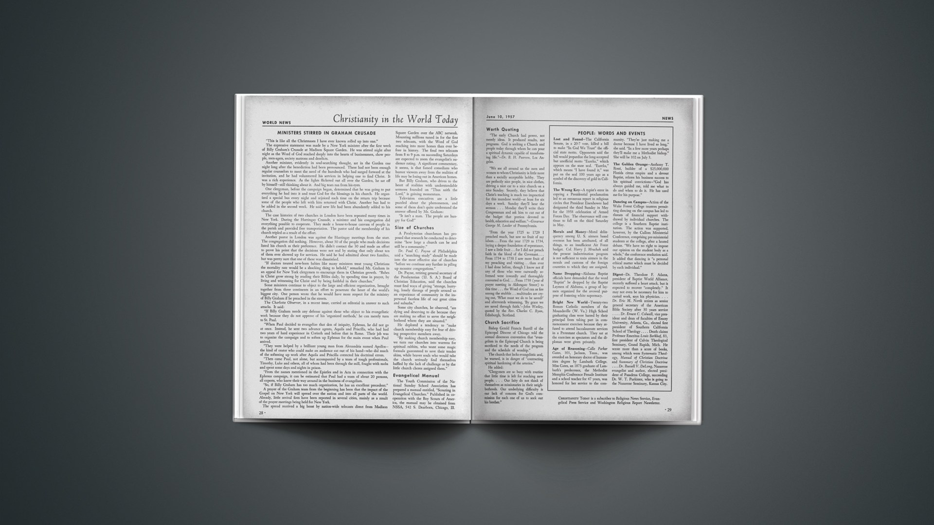 The expressive statement was made by a New York minister after the first week of Billy Graham’s Crusade at Madison Square Garden. He was stirred night after night as the Word of God reached deeply into the hearts of businessmen, show people, teen-agers, society matrons and derelicts.