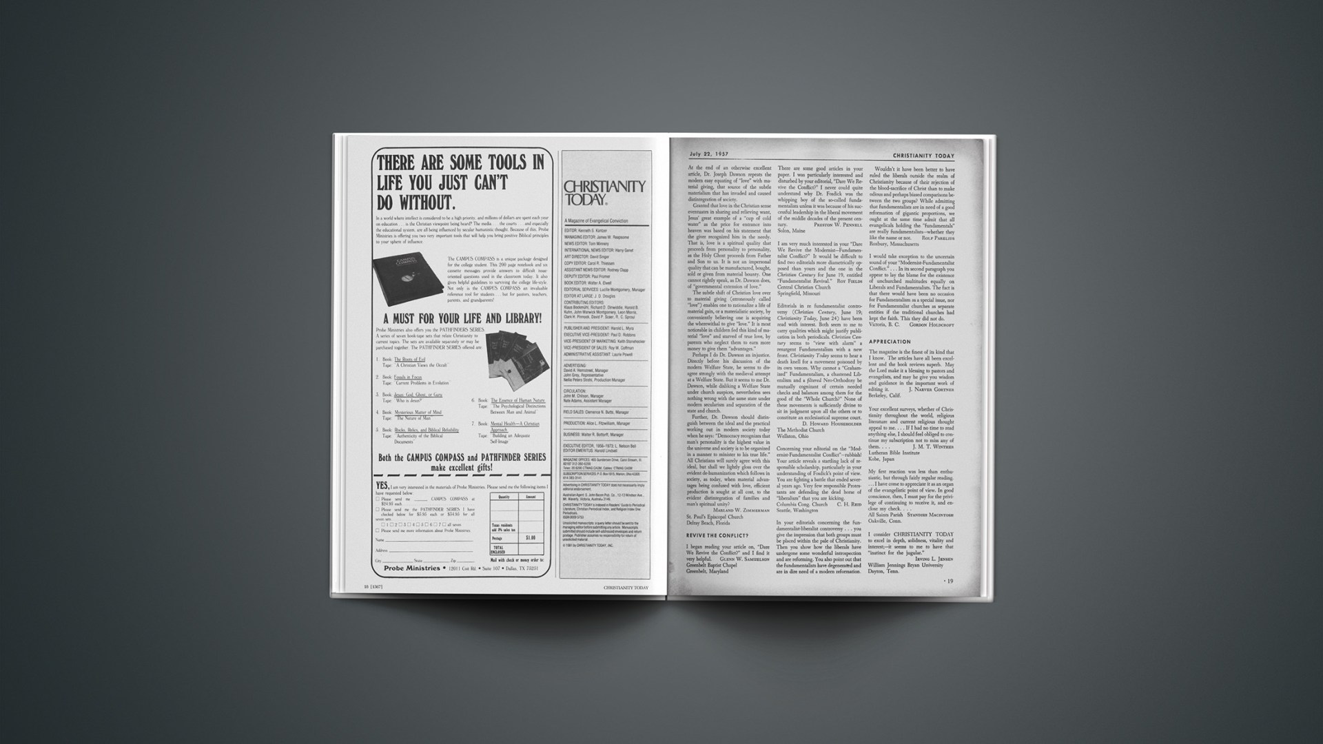 I am very much interested in your “Dare We Revive the Modernist—Fundamentalist Conflict?” It would be difficult to find two editorials more diametrically opposed than yours and the one in the Christian Century for June 19, entitled “Fundamentalist Revival.”