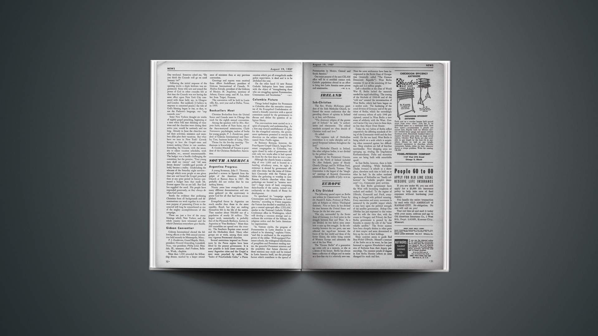 Speakers at the Portstewart Convention in the North of Ireland included Dr. Alan Redpath, pastor of Moody Church, Chicago, and Dr. William Fitch, pastor of Knox Church, Toronto. This Convention is the largest of the “daughter” meetings of Keswick Convention scheduled for the middle of July.—S.W.M.