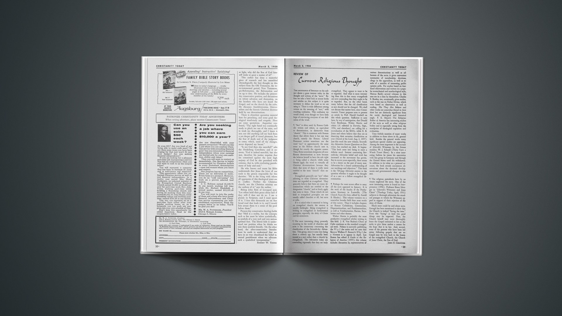 The most interesting thing presently occurring in the world of churches and sects is the controversy concerning the classification of the Seventh-day Adventists. This group, since it came into being about a century ago, has usually been treated as a sect rather than a church by evangelicals. The Adventists today are contending vigorously that they are truly evangelical. They appear to want to be so regarded. And what is more interesting than this is that many evangelicals are now contending that they ought to be so regarded. But, on the other hand, many believe that the old classification as sect should not be changed. We shall not discuss that matter here, since CHRISTIANITY TODAY proposes soon to present an article by Prof. Harold Lindsell on this whole question. Sufficient to note here, by way of anticipation, that Donald Grey Barnhouse, Walter Martin and others (cf. editorial in Eternity, Sept., 1956, and elsewhere) are calling for a re-evaluation of the SDA’s, while E. B. Jones and others believe that they are as deserving their sectarian classification as ever (Sword of the Lord, Aug. 2, 1957). Just this week the new volume, Seventh-day Adventists Answer Questions on Doctrines, has reached my desk. It begins: “This book came into being to meet a definite need. Interest concerning Seventh-day Adventist belief and work has increased as the movement has grown. But in recent years especially, there seems to be a desire on the part of many non-Adventists for a clearer understanding of our teachings and objectives.” This book is the 720-page Adventist answer to the question whether it ought to be thought of as a sect or a fellow evangelical denomination.
