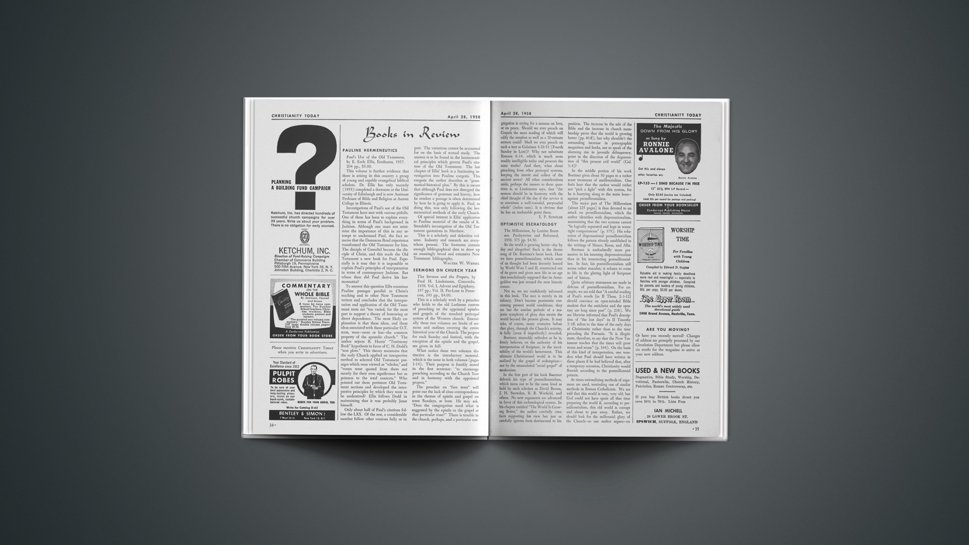 This volume is further evidence that there is arising in this country a group of young and capable evangelical biblical scholars. Dr. Ellis has only recently (1955) completed a doctorate at the University of Edinburgh and is now Assistant Professor of Bible and Religion at Aurora College in Illinois.