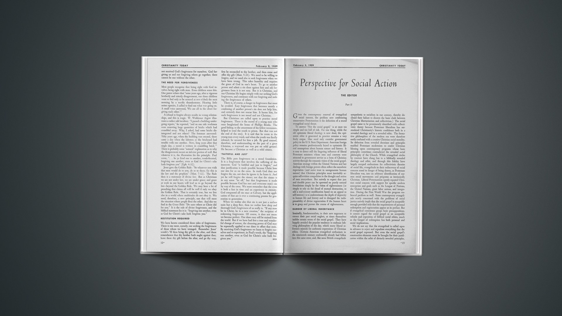 Given the contemporary renewal of evangelical social interest, the problem now confronting conservative Protestantism is the definition of a sound evangelical social thrust.