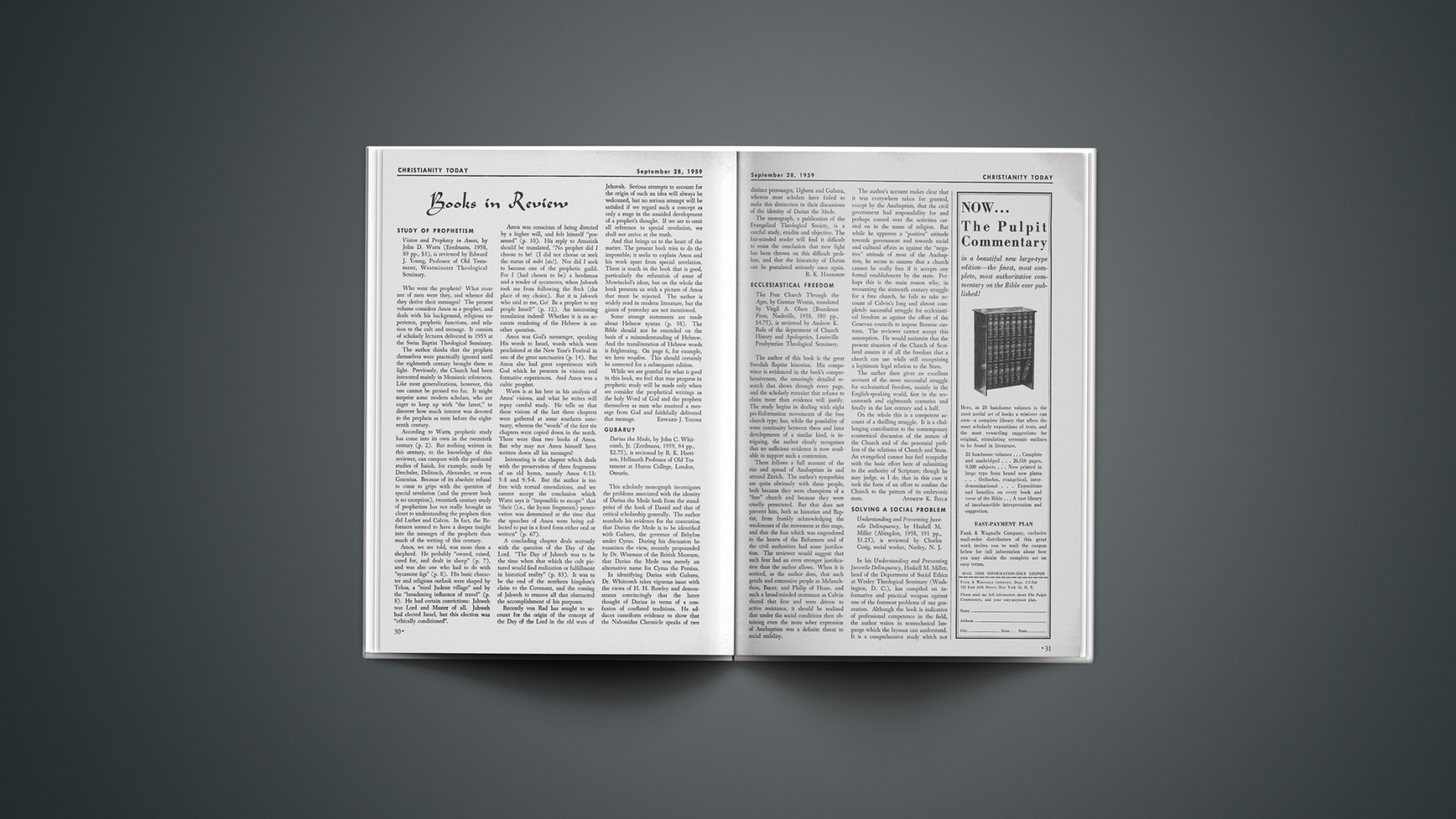Vision and Prophecy in Amos, by John D. Watts (Eerdmans, 1958, 89 pp., $3), is reviewed by Edward J. Young, Professor of Old Testament, Westminster Theological Seminary.