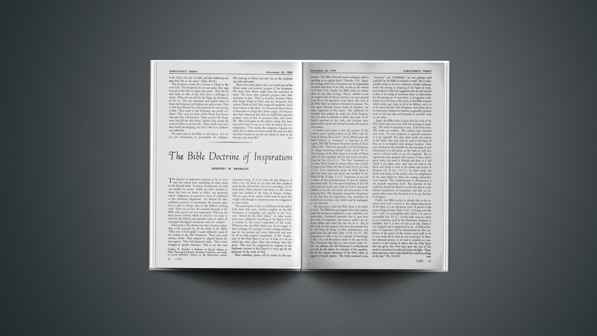The next point is that the Holy Spirit is the Spirit of truth. The Bible thus presupposes that what is given under his moving or inspiration is true, authentic, and trustworthy. Considered abstractly, that is, apart from this work of inspiration, the human authors are no doubt fallible and sinful like the rest of us. But in this work, for this purpose, they have the promise that he will bring all things to their remembrance, and guide them into all truth (John 14:26; 15:13). The compilation is with a view to certainty of knowledge (Luke 1:4), and the claim is made in the case of the New Testament that this is a true record (John 21:24). In addition, the Old Testament is authenticated not only by the claims, for example, of the prophets, but by the express statements of the New, often in regard to factual matters. The hotly contested terms “inerrancy” and “infallibility” are not perhaps used explicitly by the Bible in relation to itself. But it indisputably claims to be true, authentic, reliable testimony under the moving or inspiring of the Spirit of truth, and nowhere is there the suggestion that its real miracle is that of the using of erroneous ideas or information for the passing on of some basic or kerygmatic truth. Justice must be done to this claim of the Bible doctrine which makes any claim at all to be biblical, and it is to be noted that the Holy Scriptures themselves know no distinction whatsoever between supposedly spiritual truth on the one side and historical or scientific truth on the other.