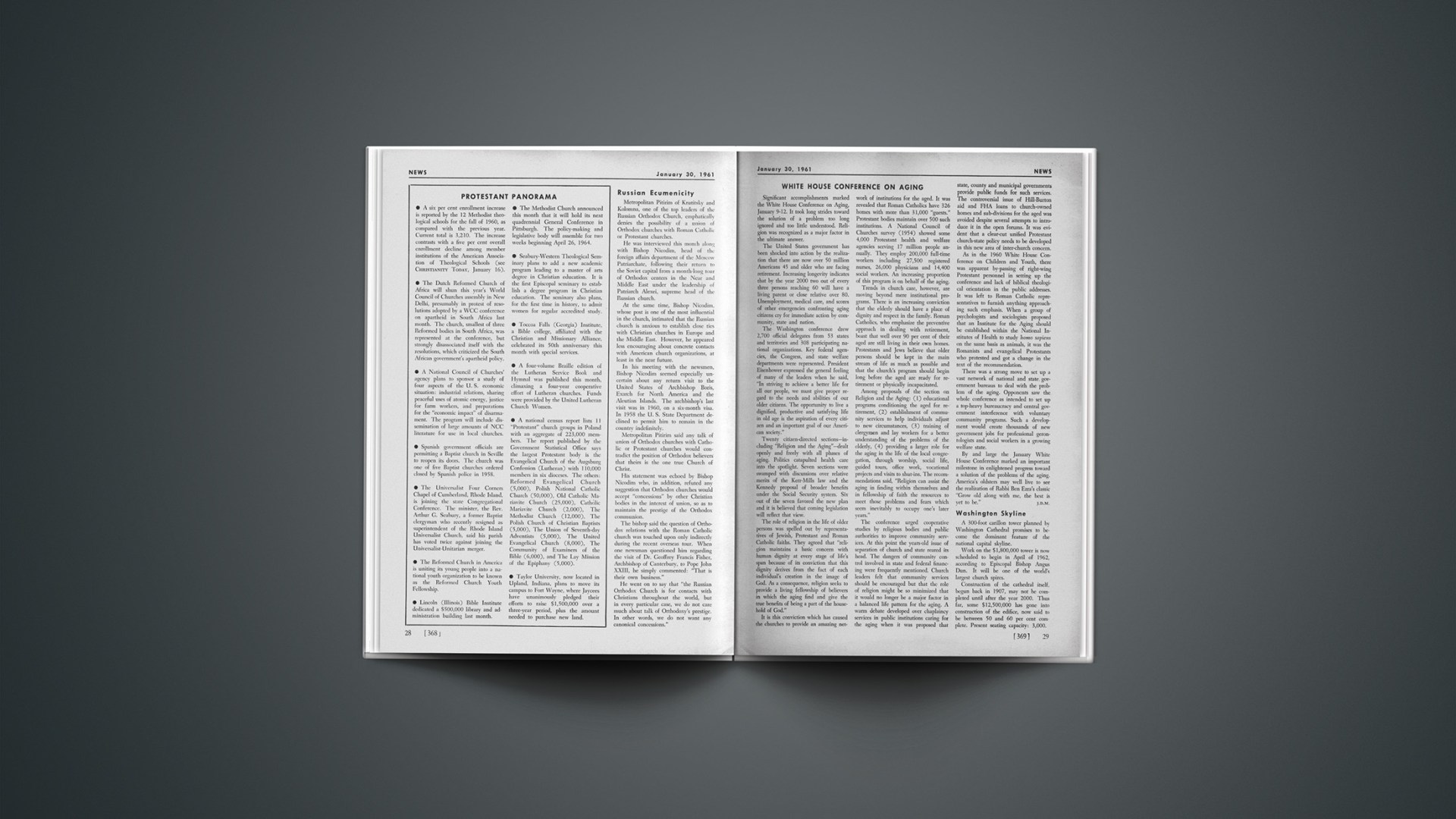 Significant accomplishments marked the White House Conference on Aging, January 9–12. It took long strides toward the solution of a problem too long ignored and too little understood. Religion was recognized as a major factor in the ultimate answer.
