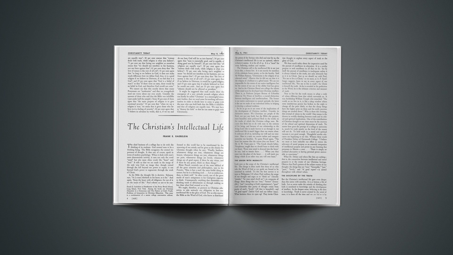 We ought, therefore, as partners in Christian education, to take seriously our obligation to live our intellectual life to the glory of God. For us who receive the Bible as the Word of God, who know at first-hand the power of the Saviour who died and rose for us, the Christian’s intellectual life is not an optional, take-it-or-leave-it matter. It is for all of us. It is a “must” for every believing student and teacher.