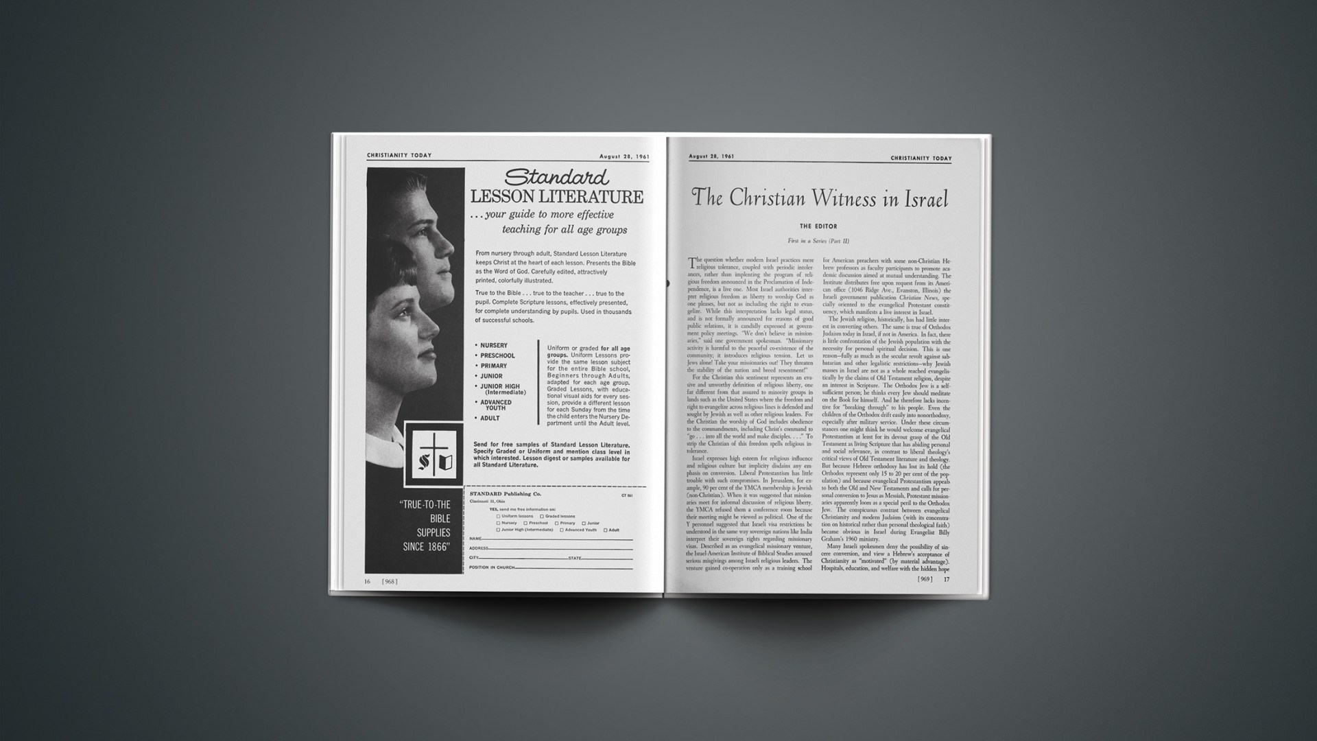 Orthodox groups usually control the Ministry of Interior, Israel’s immigration regulating agency; the present minister of interior is reportedly so learned in Judaism that he could qualify as a rabbi. Certain officials insist nonetheless that only fanatically religious Jews really oppose missionary effort, that Israel actually implements religious freedom “to the maximal extent that orthodox pressures allow.” Many Jews themselves resent certain pressures such as the requirement of rabbinate marriage, which exacts an affirmation of orthodoxy. One tour guide who ridiculed the claim that the Israeli population is “wholly Orthodox, but with various degrees of observance and nonobservance,” said that “70 per cent of the Israeli Jews are non-Orthodox and most would prefer a civil marriage.” Such desires for church-state separation do not, however, necessarily reflect a full demand for religious freedom. The Jew has come to Palestine to escape persecution, much of it religious. Whether Orthodox or non-Orthodox, he therefore tends to attribute his sufferings to Christian vindictiveness. He wants to build a national bulwark against another such situation and fears any revival of Christianity in Israel. Hence, in some official circles open disdain for evangelism may really conceal a disquieting fear of evangelism. Obviously then, reluctance over visas for Protestant missionaries should not be explained only by Orthodox pressures; liberal Jews and free-thinkers also share this same aversion. They justify antipathy for missionaries by reference to the religious intolerances and persecutions of the past. They have not forgotten the Romanist Inquisition nor other crusades to “get ‘the Christ-Killers’,” and they shrink from a religious commitment which implies endorsement of such persecutions and intolerances. “For the first time in 2000 years we Jews can escape forced religious conversion,” said one government spokesman. “Let us build our Jewish state and Jewish culture. If you need missionaries to minister to non-Jewish communities, that is one thing. But to ask a Jew to ‘convert’ produces an abnormal Jew; he is no longer fully at home with Jewish traditions and culture; his children are taught that what his forefathers and other Jew’s believe is not ‘the whole truth.’ That is destructive of the sense of Jewish community.” Moreover, many leaders expect of all their citizens a full “conversion” to the ideals of the State of Israel; for the Orthodox these ideals include revival of the Jewish religion. This thinking prompts government agencies to diminish as much as possible the granting of visas to Protestant workers.