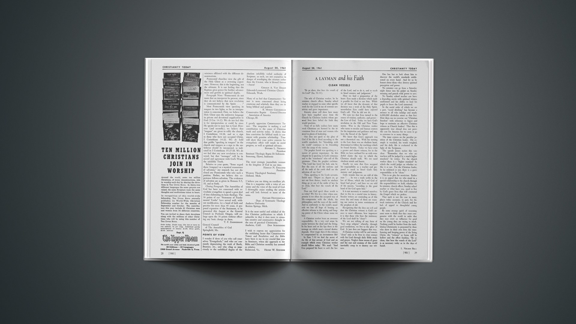 Recognizing that the days are evil and that the Christian witness is God’s answer to man’s dilemma, how important it is that those who bear the testimony of the Lord shall be “clean”!
