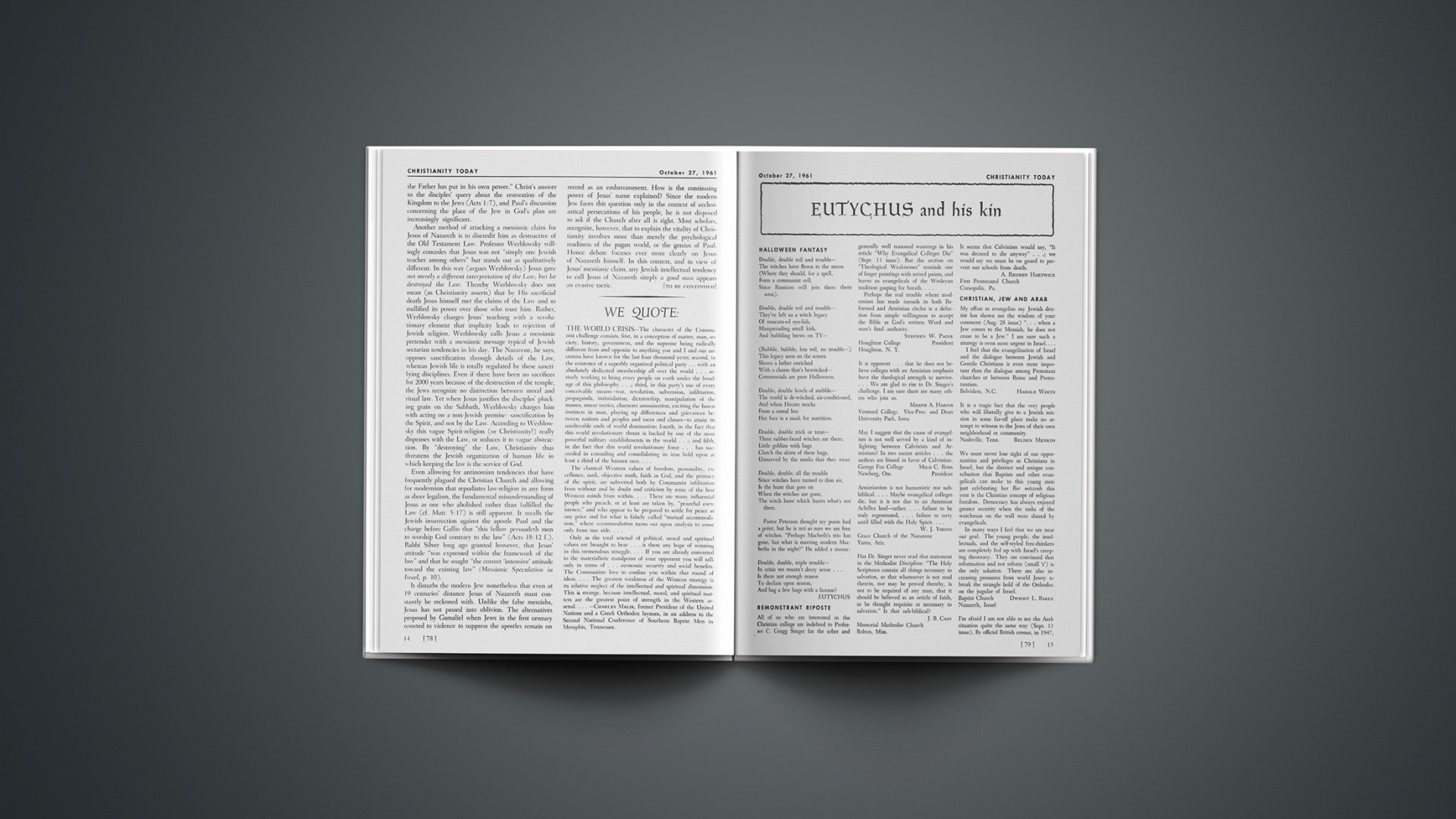 As an individual member of the Conservative Baptist Association of America, I take exception to the letter (August 28 issue) from B. Myron Cedarholm, General Director of Conservative Baptist Association of America, in which he states, “Many of us feel that CHRISTIANITY TODAY’ is more concerned about being courteous and scholarly than they are in being biblical and positive.” … I fail to see the “either-or-ness” of Dr. Cedarholm’s statement. Cannot a dedicated, Holy Spirit-born Christian be courteous, scholarly, biblical and positive all at the same time?