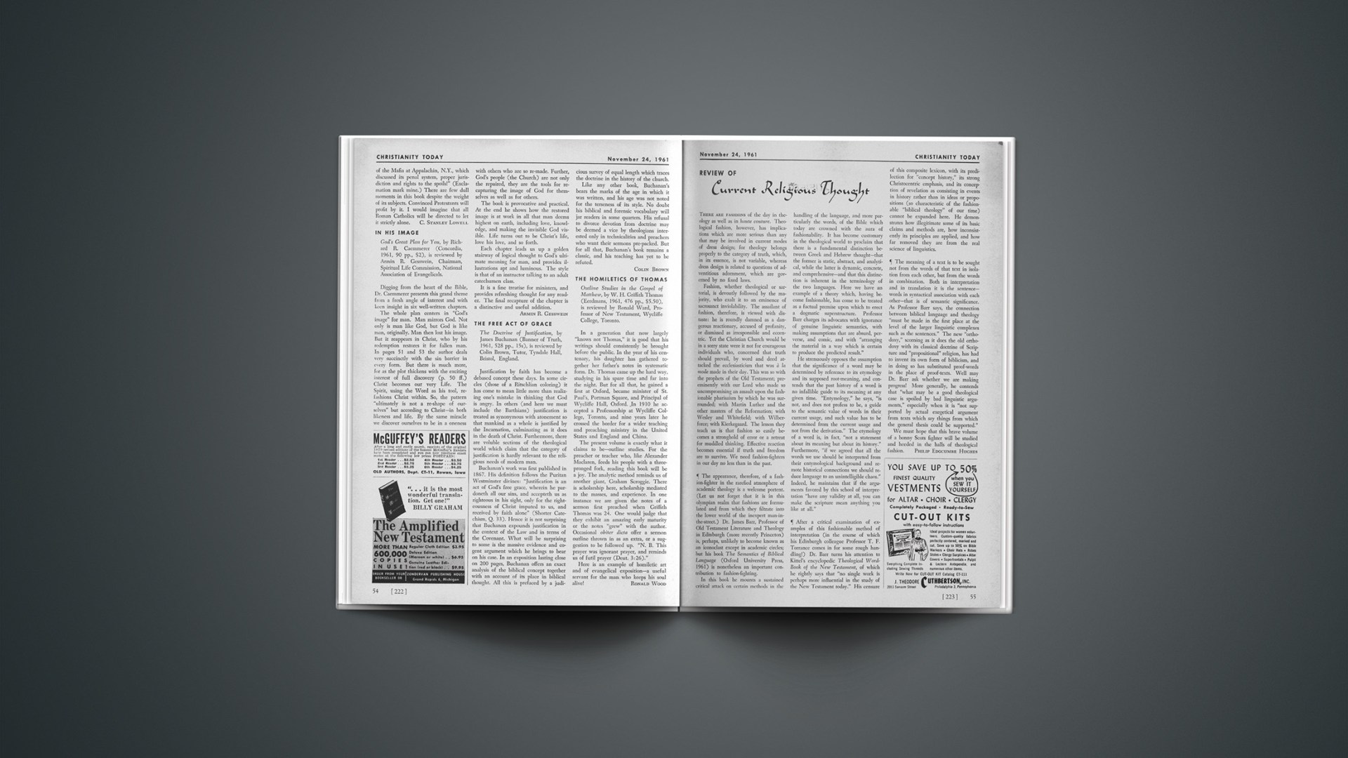 The appearance, therefore, of a fashion-fighter in the rarefied atmosphere of academic theology is a welcome portent. (Let us not forget that it is in this olympian realm that fashions are formulated and from which they filtrate into the lower world of the inexpert man-in-the-street.) Dr. James Barr, Professor of Old Testament Literature and Theology in Edinburgh (more recently Princeton) is, perhaps, unlikely to become known as an iconoclast except in academic circles; but his book The Semantics of Biblical Language (Oxford University Press, 1961) is nonetheless an important contribution to fashion-fighting.