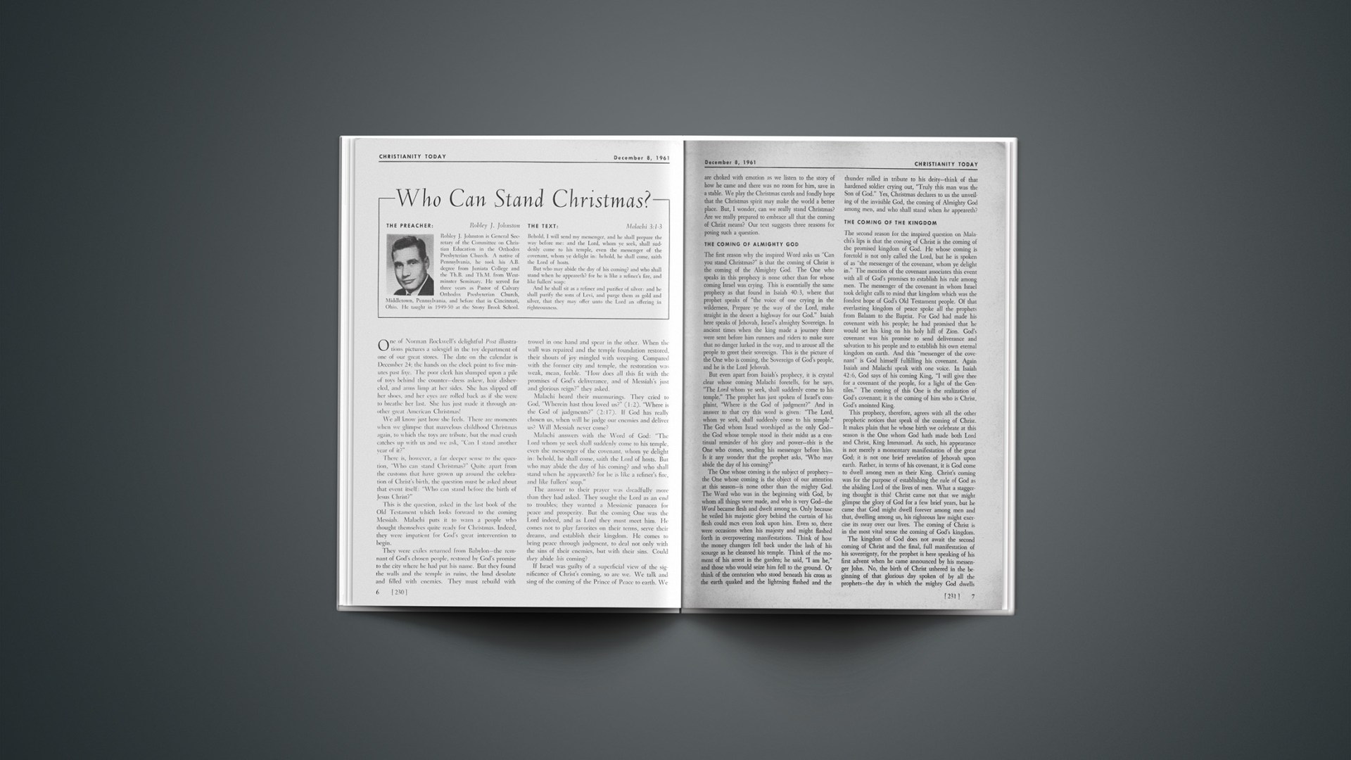The sermon “Who Can Stand Christmas?” was nominated forCHRISTIANITY TODAY’SSelect Sermon Series by Professor Edmund P. Clowney of Westminster Theological Seminary, Philadelphia. His overcomment follows: