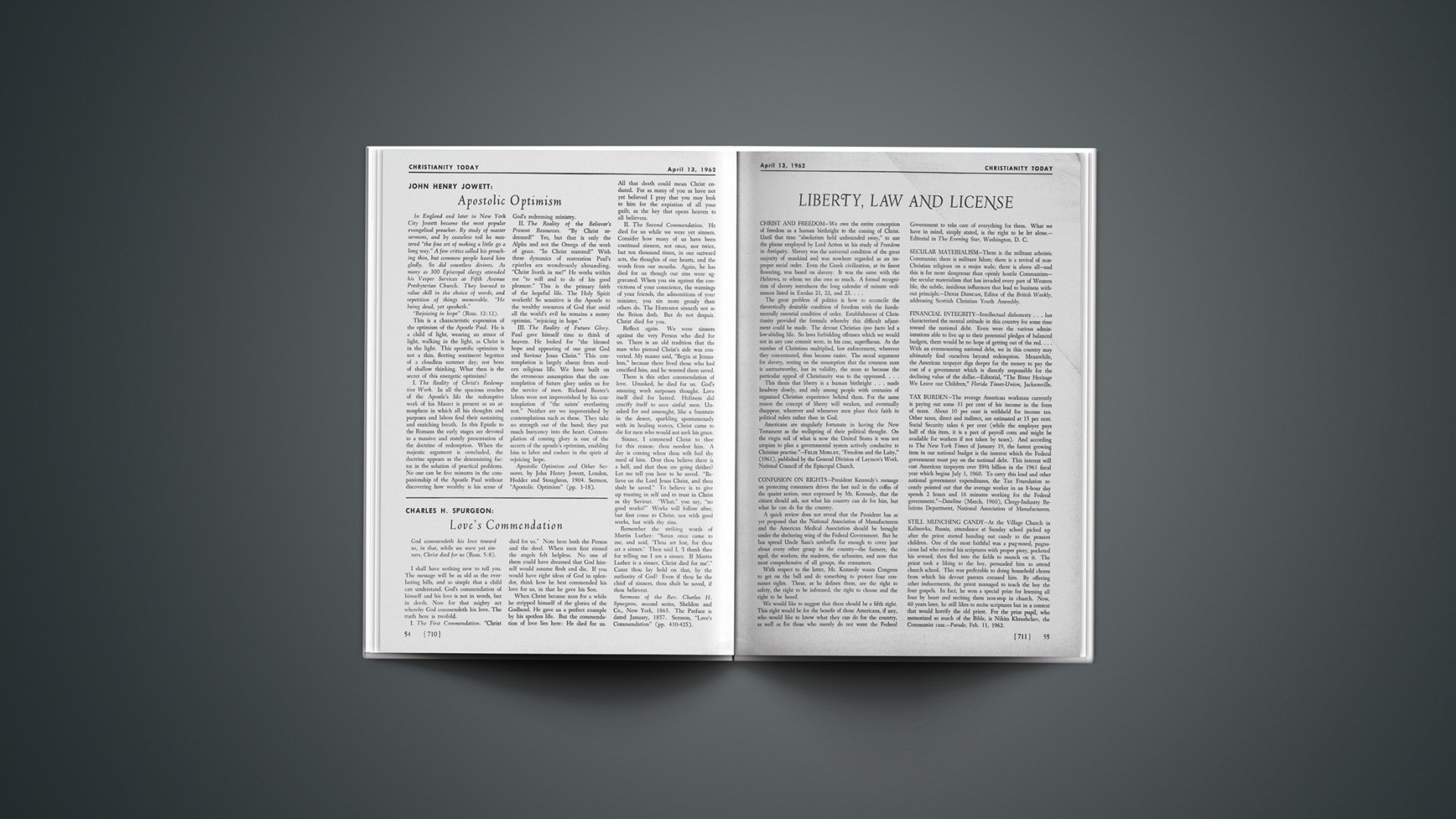 Apostolic Optimism and Other Sermons, by John Henry Jowett, London, Hodder and Stoughton, 1904. Sermon, “Apostolic Optimism” (pp. 1–18).