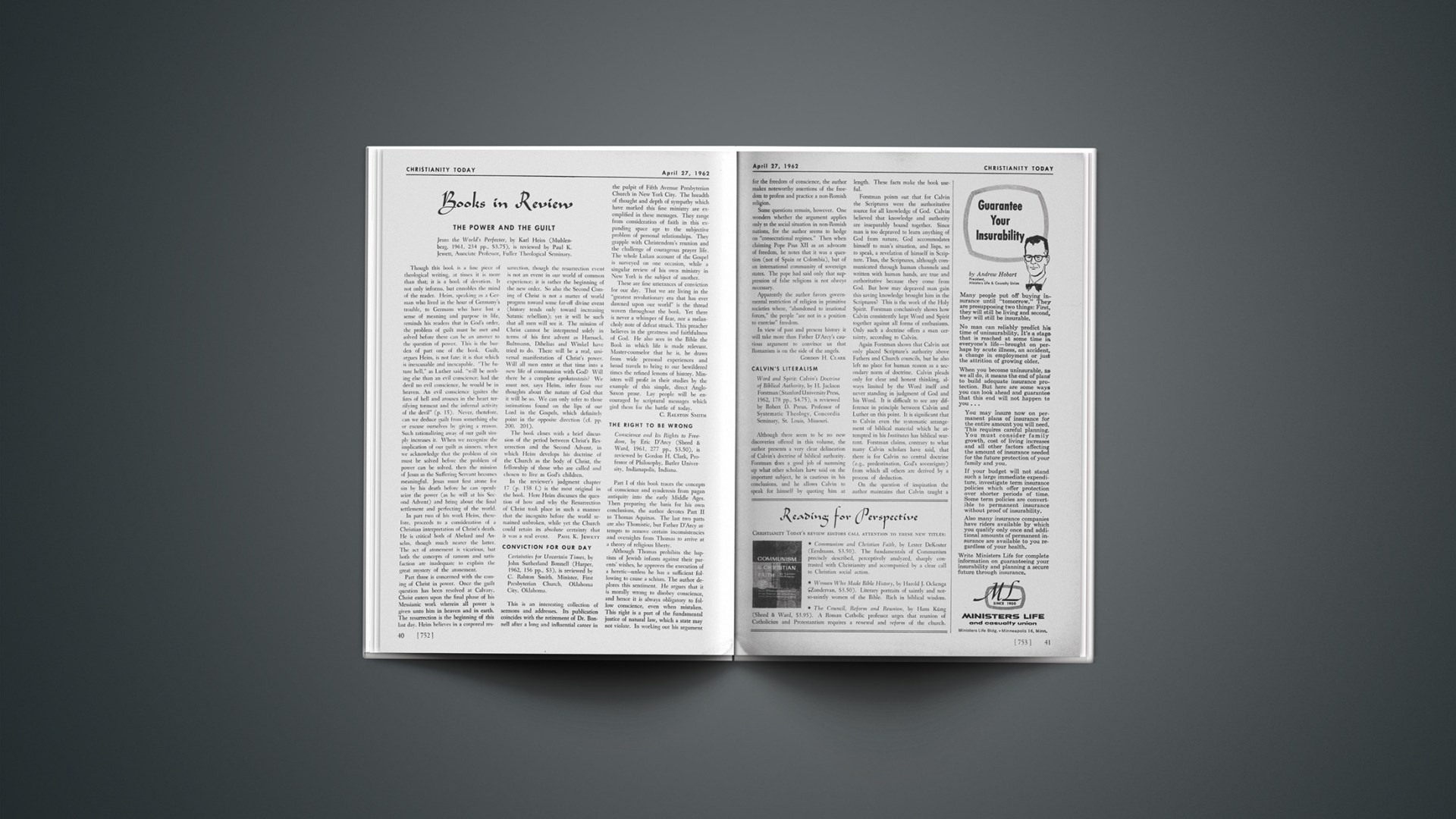 Though this book is a fine piece of theological writing, at times it is more than that; it is a book of devotion. It not only informs, but ennobles the mind of the reader. Heim, speaking as a German who lived in the hour of Germany’s trouble, to Germans who have lost a sense of meaning and purpose in life, reminds his readers that in God’s order, the problem of guilt must be met and solved before there can be an answer to the question of power. I his is the burden of part one of the book. Guilt, argues Heim, is not fate; it is that which is inexcusable and inescapable. “The future hell,” as Luther said, “will be nothing else than an evil conscience; had the devil no evil conscience, he would be in heaven. An evil conscience ignites the fires of hell and arouses in the heart terrifying torment and the infernal activity of the devil” (p. 15). Never, therefore, can we deduce guilt from something else or excuse ourselves by giving a reason. Such rationalizing away of our guilt simply increases it. When we recognize the implication of our guilt as sinners, when we acknowledge that the problem of sin must be solved before the problem of power can be solved, then the mission of Jesus as the Suffering Servant becomes meaningful. Jesus must first atone for sin by his death before he can openly seize the power (as he will at his Second Advent) and bring about the final settlement and perfecting of the world.