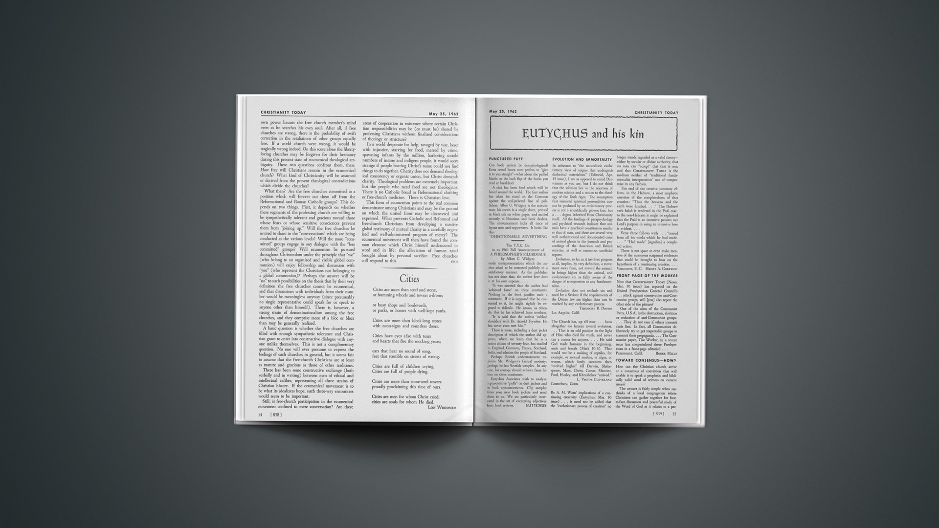 Re A. M. Watts’ implications of a continuing creativity (Eutychus, Mar. 30 issue) … it need not be added that the “evolutionary process of creation” no longer stands regarded as a valid theory—either by secular or divine authority; that no man can “accept” that that is not; and that CHRISTIANITY TODAY is the medium neither of “traditional fundamentalist interpretation” nor of compromise in any fashion.