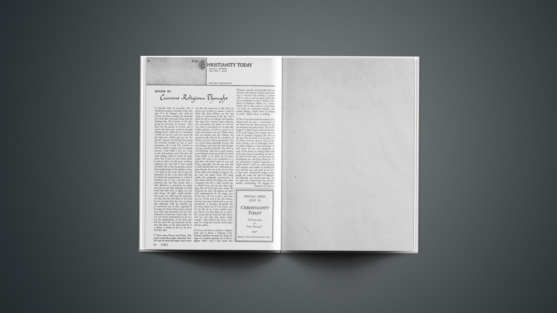 Franny and Zooey is almost a religious book and is almost a Christian book. Franny’s problem certainly lies along the edge of a neurosis growing out of her religious “kick,” and I very much like Salinger’s attitude toward people who are tortured with religious seeking. But nothing is ventured and nothing is gained and we seem to end up again with nothing accomplished except a brilliant exhibition of Salinger’s ability as a writer. Maybe this is what makes it a best seller—it keeps its existential integrity and settles nothing. Maybe there is nothing to settle. Maybe there is nothing.