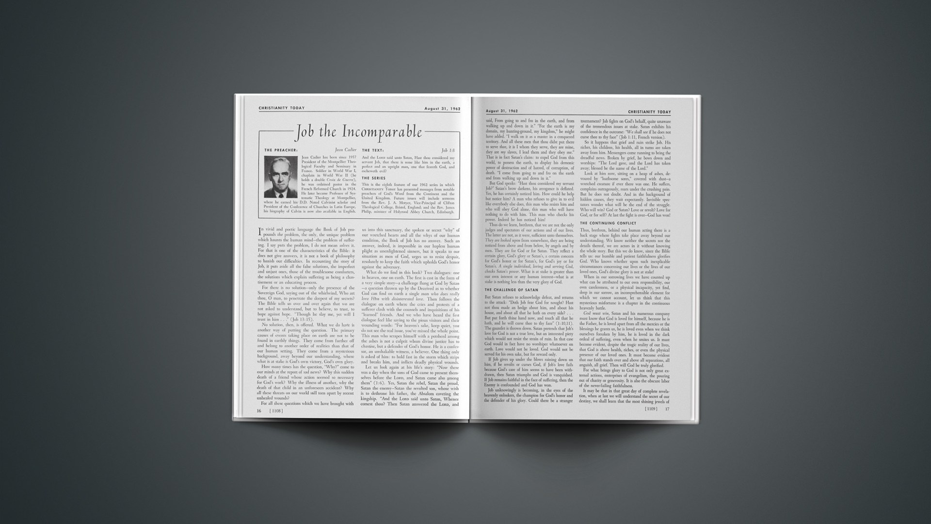 This is the eighth feature of our 1962 series in which CHRISTIANITY TODAY has presented messages from notable preachers of God’s Word from the Continent and the United Kingdom. Future issues will include sermons from the Rev. J. A. Motyer, Vice-Principal of Clifton Theological College, Bristol, England; and the Rev. James Philip, minister of Holyrood Abbey Church, Edinburgh.