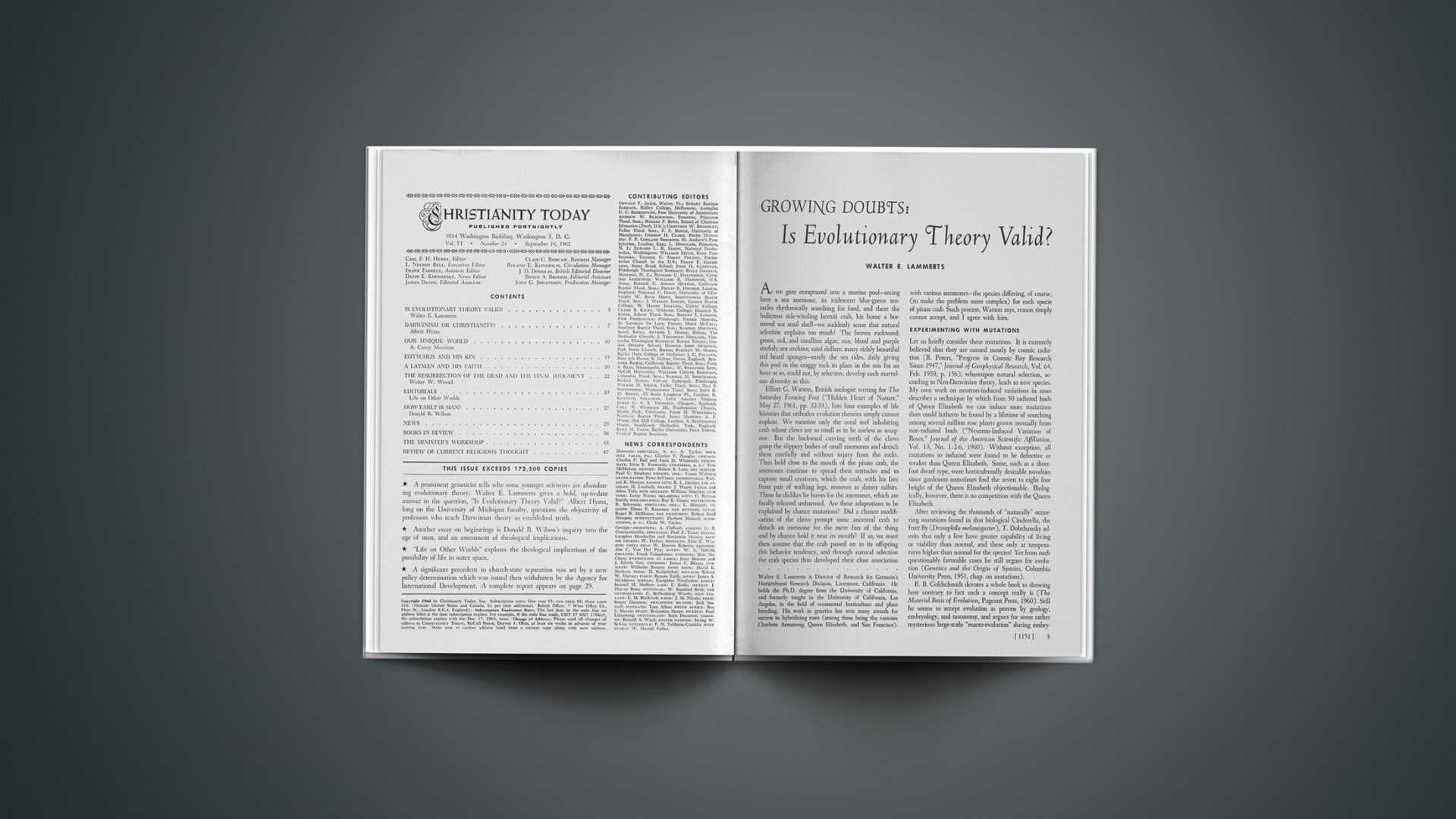 Elliott G. Watson, British zoologist writing for The Saturday Evening Post (“Hidden Heart of Nature,” May 27, 1961, pp. 32–33), lists four examples of life histories that orthodox evolution theories simply cannot explain. We mention only the coral reef inhabiting crab whose claws are so small as to be useless as weap-one. But the backward curving teeth of the claws grasp the slippery bodies of small anemones and detach them carefully and without injury from the rocks. Thus held close to the mouth of the pirate crab, the anemones continue to spread their tentacles and to capture small creatures, which the crab, with his free front pair of walking legs, removes as dainty tidbits. Those he dislikes he leaves for the anemones, which are finally released unharmed. Are these adaptations to be explained by chance mutations? Did a chance modification of the claws prompt some ancestral crab to detach an anemone for the mere fun of the thing and by chance hold it near its mouth? If so, we must then assume that the crab passed on to its offspring this behavior tendency, and through natural selection the crab species thus developed their close association with various anemones—the species differing, of course, (to make the problem more complex) for each specie of pirate crab. Such process, Watson says, reason simply cannot accept, and I agree with him.