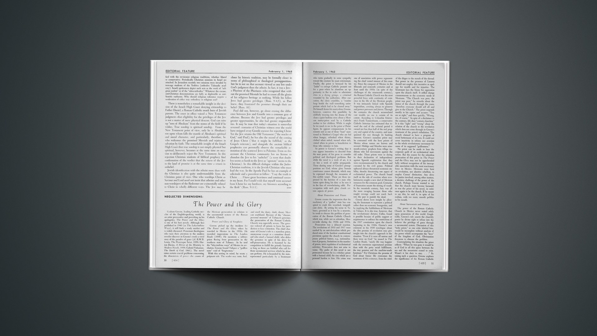 Graham Greene, leading Catholic novelist of the English-speaking world, is an artist provocative and provoking in his apologetics. The Power and the Glory is one of his best novels. Although first published in 1940 (as The Labyrinthine Ways), it still finds a ready market and is widely discussed. Protestant theologians who turn their attention to the modern novelist discover in Greene’s work a vivid story of the paradox of grace (cf. R.W.B. Lewis, The Picaresque Saint, 1959; Horton Davies, A Mirror of the Ministry in Modern Novels, 1959; Gabriel Vahanian. The Death of God, 1961). The novel raises certain crucial problems concerning the dimensions of power—the causes of the Mexican persecution in relation to the sacramental system of the Roman Catholic Church.
