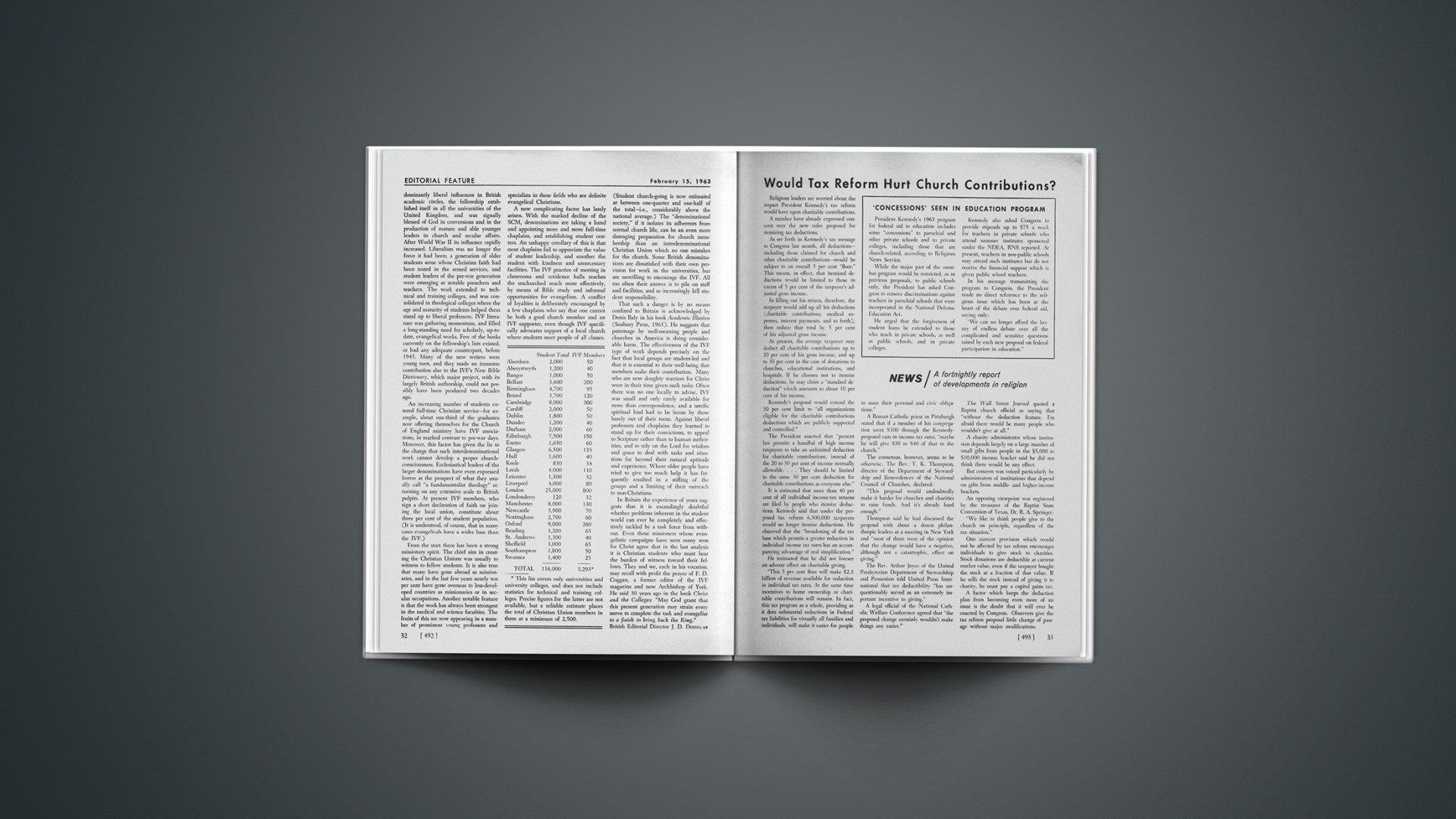Religious leaders are worried about the impact President Kennedy’s tax reform would have upon charitable contributions.