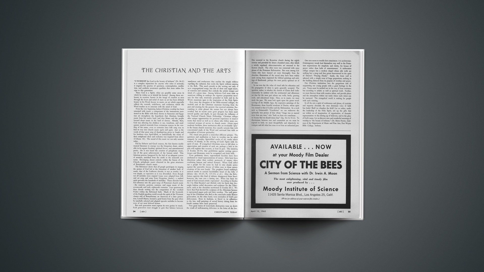 In all the arts a spirit of restlessness and gloom, of cynicism and impurity abounds; the once dominant voice of faith has faded. Shall we abandon the field? Let us rather, under the leadership of the Holy Spirit, stir up the gifts that are within us—of imagination, of organization, of dramatic representation—to the stirring up of believers, and to the glory of God’s name. Let us discover new and wonderful meanings of worship in “the beauty of holiness.”—Dr. RENE FRANK, chairman of the Department of Music and Fine Arts, Fort Wayne Bible College, Indiana.