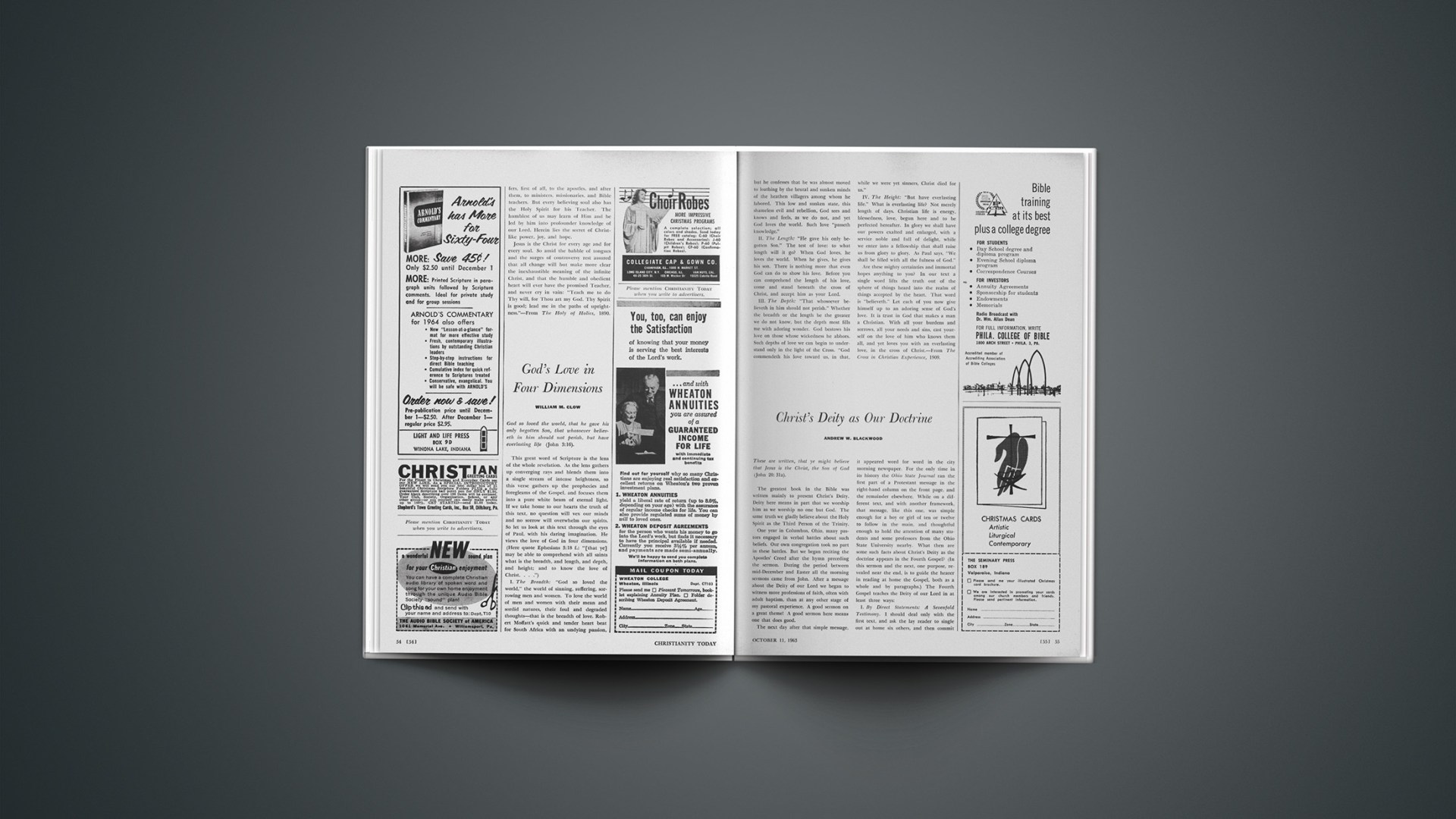 The next day after that simple message, it appeared word for word in the city morning newspaper. For the only time in its history the Ohio State Journal ran the first part of a Protestant message in the right-hand column on the front page, and the remainder elsewhere. While on a different text, and with another framework, that message, like this one, was simple enough for a boy or girl of ten or twelve to follow in the main, and thoughtful enough to hold the attention of many students and some professors from the Ohio State University nearby. What then are some such facts about Christ’s Deity as the doctrine appears in the Fourth Gospel? (In this sermon and the next, one purpose, revealed near the end, is to guide the hearer in reading at home the Gospel, both as a whole and by paragraphs.) The Fourth Gospel teaches the Deity of our Lord in at least three ways: