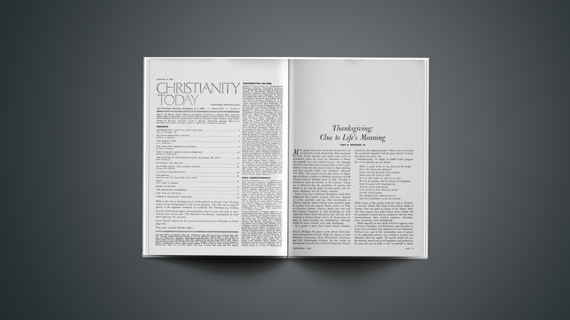 What is the role of thanksgiving in God’s pattern of things? Cary Weisiger shows it to be indispensable in the divine purpose. The editorial on page 29 points to the apparent tendency to secularize the Thanksgiving holiday.