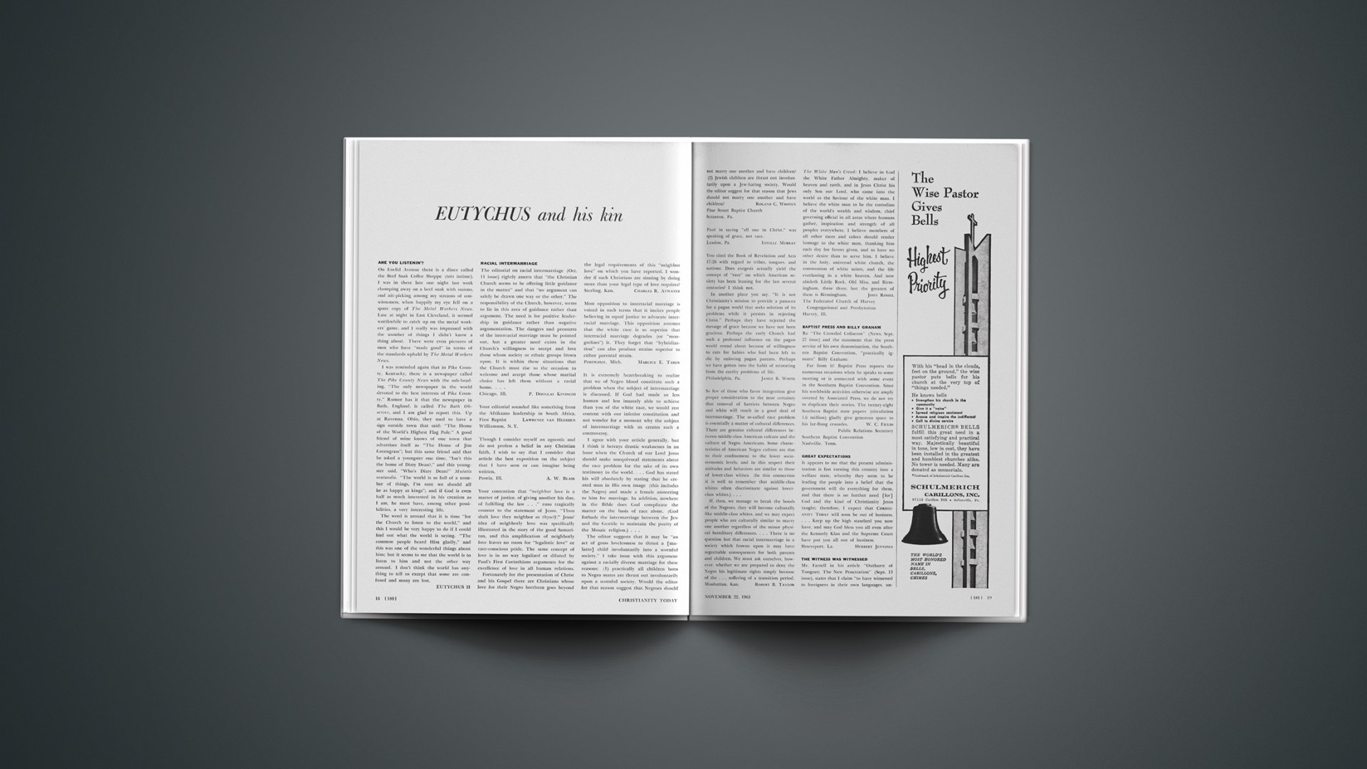 It appears to me that the present administration is fast turning this country into a welfare state, whereby they seem to be leading the people into a belief that the government will do everything for them, and that there is no further need [for] God and the kind of Christianity Jesus taught; therefore, I expect that CHRISTIANITY TODAY will soon be out of business.… Keep up the high standard you now have, and may God bless you all even after the Kennedy Klan and the Supreme Court have put you all out of business.