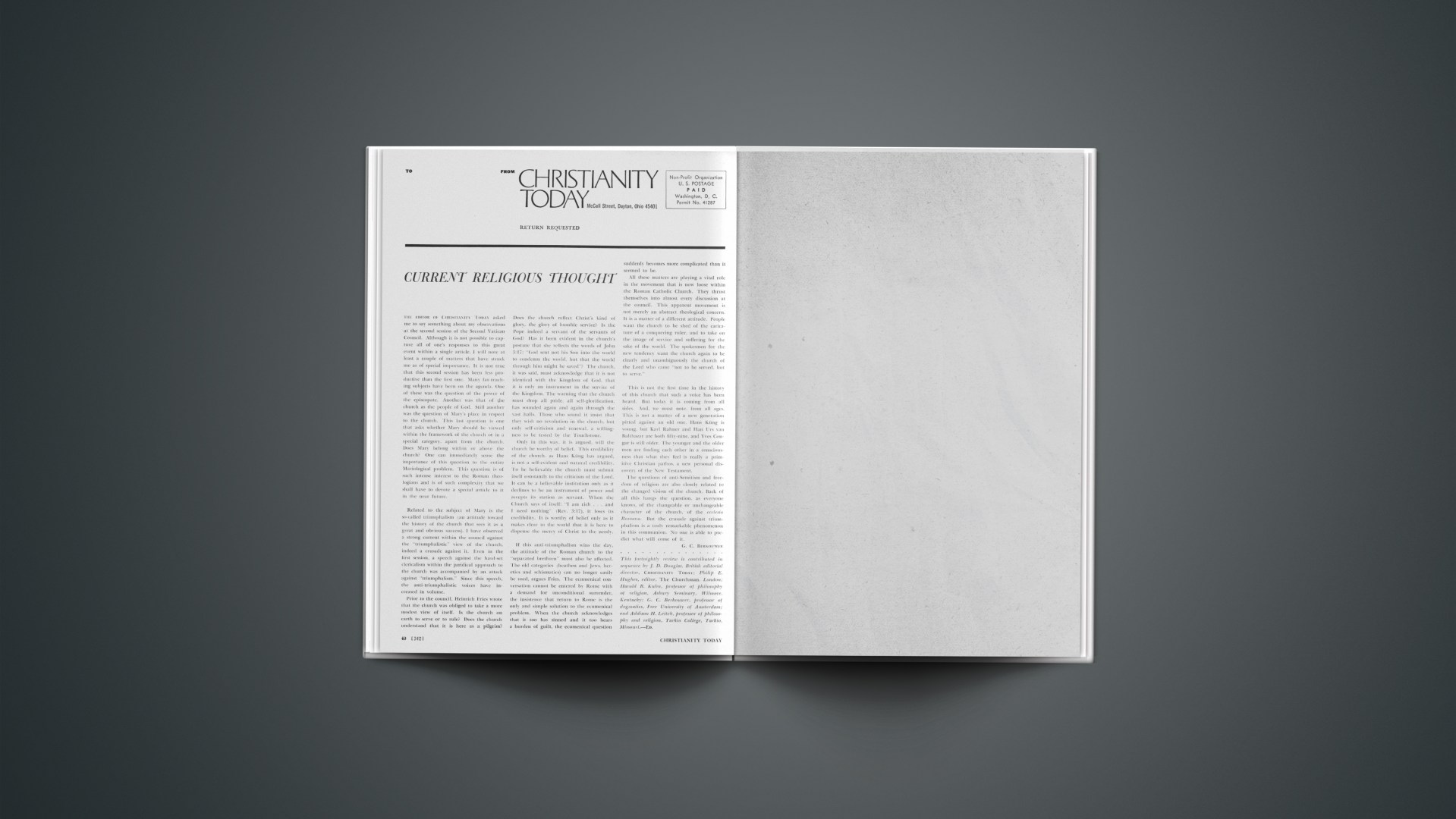 The editor of Christianity Today asked me to say something about my observations at the second session of the Second Vatican Council. Although it is not possible to capture all of one’s responses to this great event within a single article, I will note at least a couple of matters that have struck me as of special importance. It is not true that this second session has been less productive than the first one. Many far-reaching subjects have been on the agenda. One of these was the question of the power of the episcopate. Another was that of the church as the people of God. Still another was the question of Mary’s place in respect to the church. This last question is one that asks whether Mary should be viewed within the framework of the church or in a special category, apart from the church. Does Mary belong within or above the church? One can immediately sense the importance of this question to the entire Mariological problem. This question is of such intense interest to the Roman theologians and is of such complexity that we shall have to devote a special article to it in the near future.