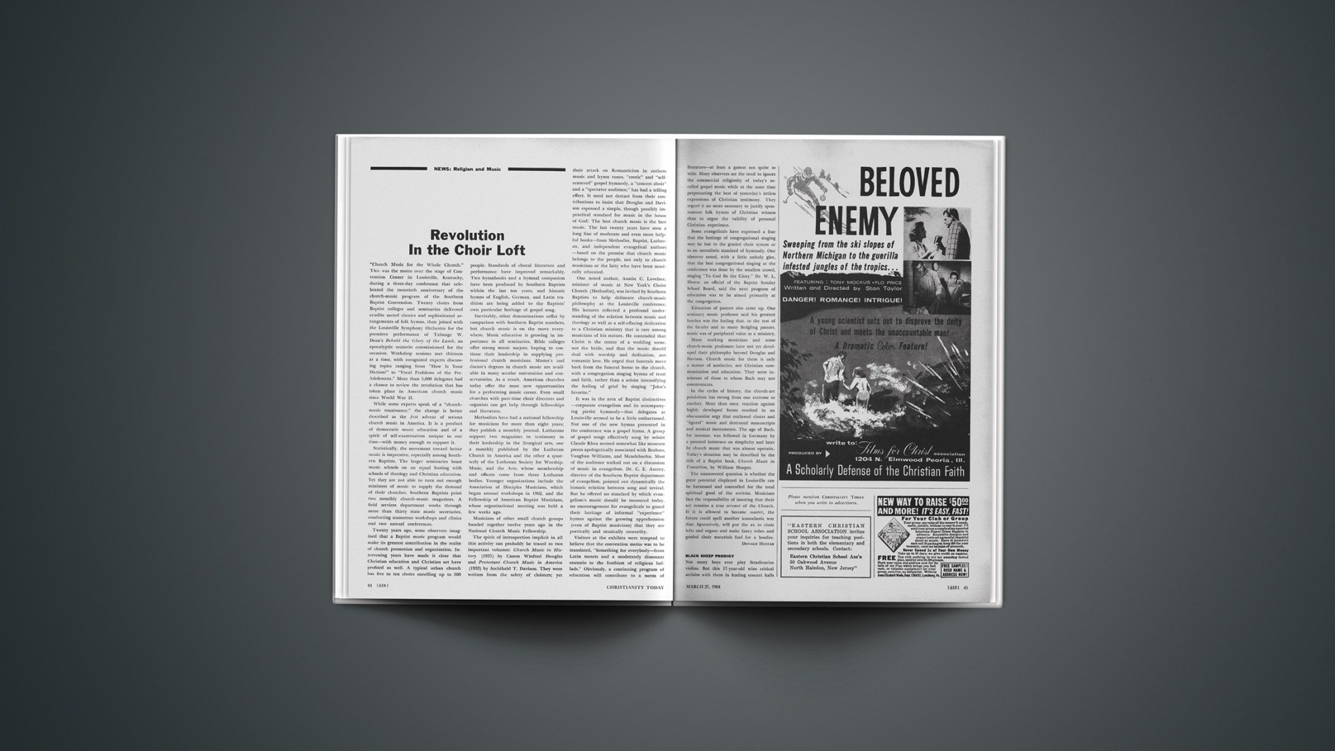 A clue to his biblical interest is found in his name: James Oliver Buswell IV. As a musician he is somewhat of a family “black sheep,” inasmuch as his two living namesakes excel in altogether different fields. His father (James III) teaches anthropology at Wheaton College. His grandfather (James Jr.) is dean of the graduate faculty at Covenant College and Seminary in St. Louis. Both are interested in music, however, and the youth’s mother—who lives with him in a New York apartment during the school year—is an accomplished organ and piano teacher.