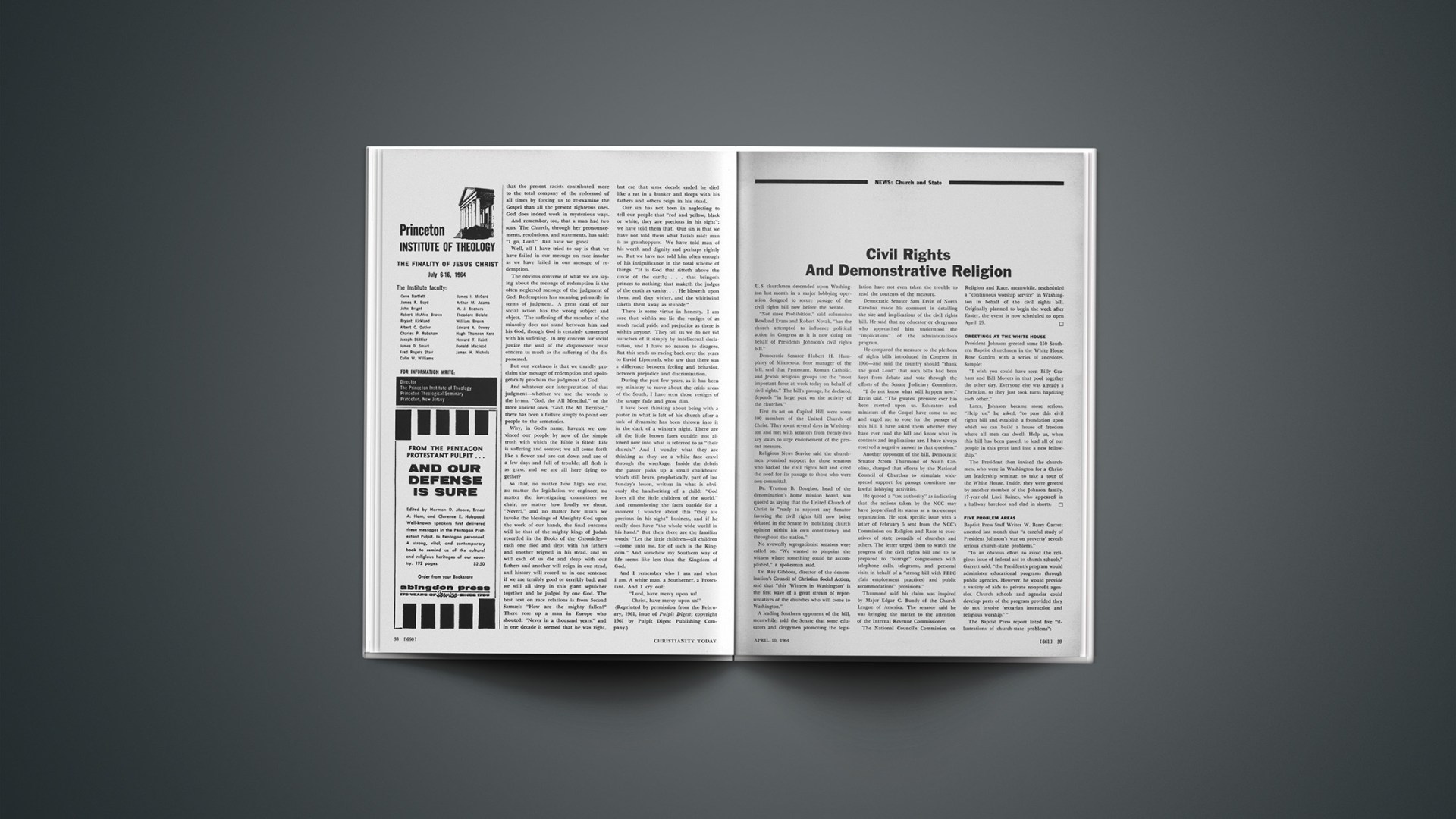 The National Council’s Commission on Religion and Race, meanwhile, rescheduled a “continuous worship service” in Washington in behalf of the civil rights bill. Originally planned to begin the week after Easter, the event is now scheduled to open April 29.