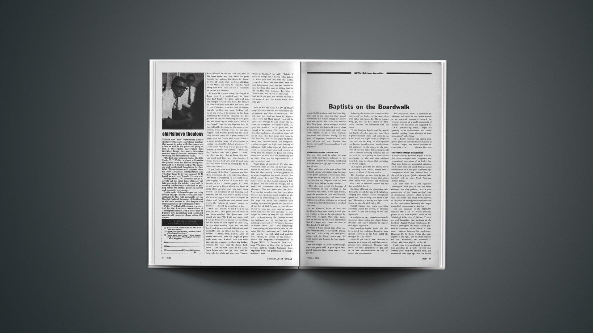 Following the forums the American Baptists heard two leaders of the non-violent civil rights movement, Dr. Martin Luther King, Jr., and the Rev. Ralph B. Abernathy, confront the convention with the issues.