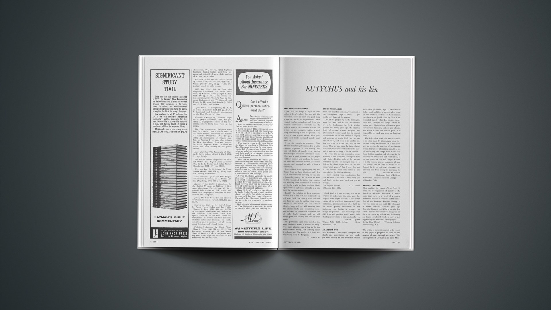 After reading the report (News, Sept. 11 issue) on the “spectrum of belief” of the American Scientific Affiliation, it would seem that there is a need of a protest movement such as is apparent in the formation of the Creation Research Society. If one puts man on the earth fifty thousand to several hundred thousand years ago, then the Adam of the Bible is not the first “man” but one who “evolved” to appear on the scene when agriculture and husbandry are found developed. Such a view is not supporting the Bible but destroying it.…