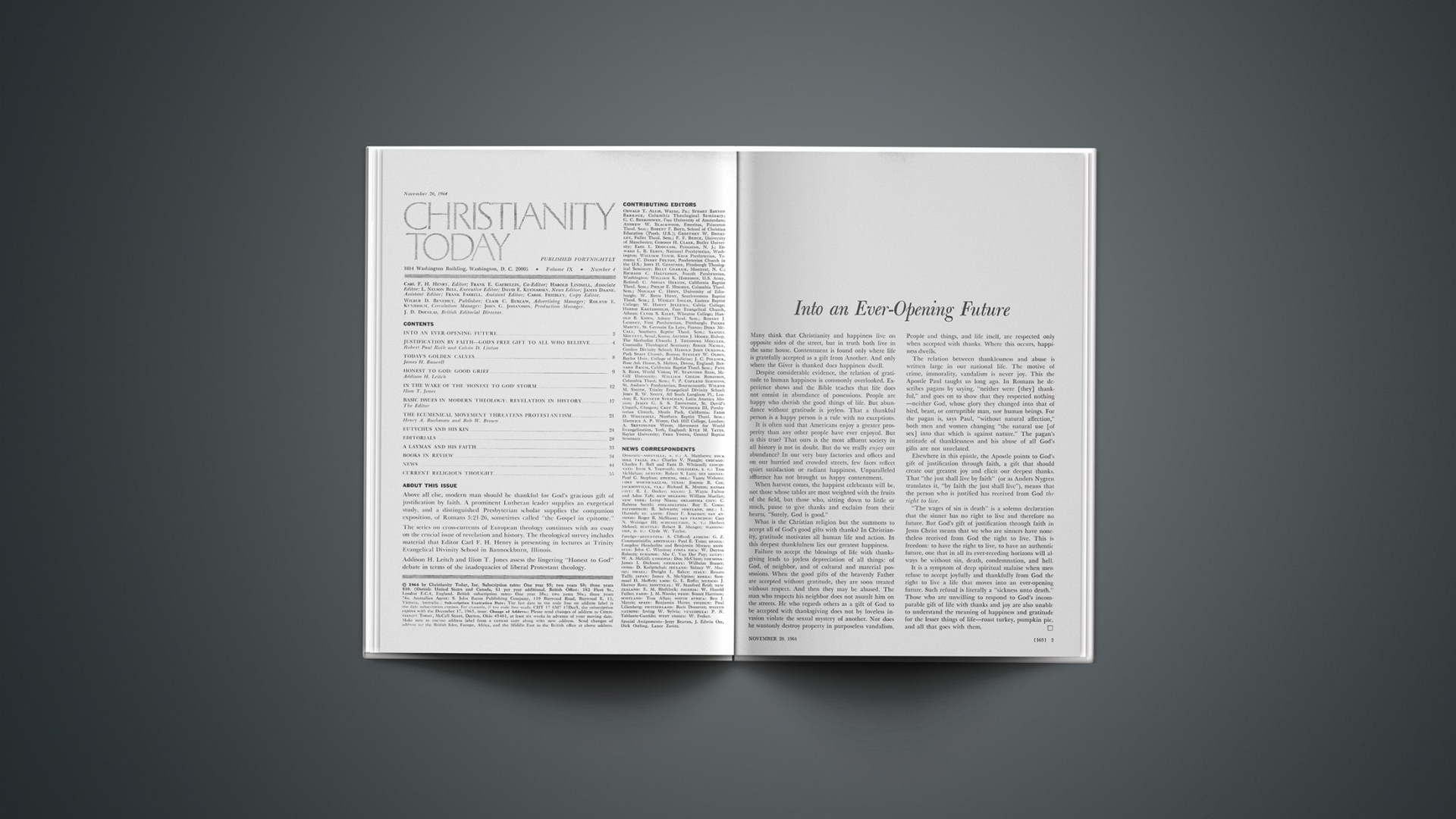 The series on cross-currents of European theology continues with an essay on the crucial issue of revelation and history. The theological survey includes material that Editor Carl F. H. Henry is presenting in lectures at Trinity Evangelical Divinity School in Bannockburn, Illinois.