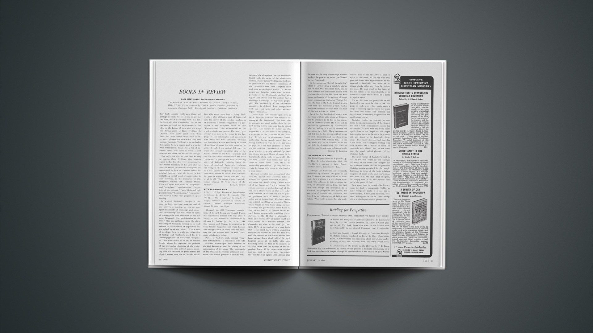 A Survey of Old Testament Introduction, by Gleason L. Archer, Jr. (Moody, 1964, 507 pp., $6.95), is reviewed by Charles F. Pfeiffer, associate professor of ancient literature, Central Michigan University, Mount Pleasant, Michigan.