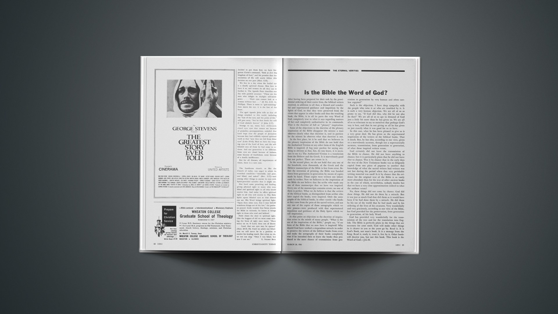 God has provided very wonderfully for the transmission of the text and for the translation into English. The Bible is perfectly plain in the things that are necessary for your souls. God will make other things in it clearer to you as the years go by. Read it. It is God’s Book, not man’s book. It is a message from the King. Read it, study it, trust it, live by it. Other books will deceive you, but not this book. This book is the Word of God.—J.G.M.