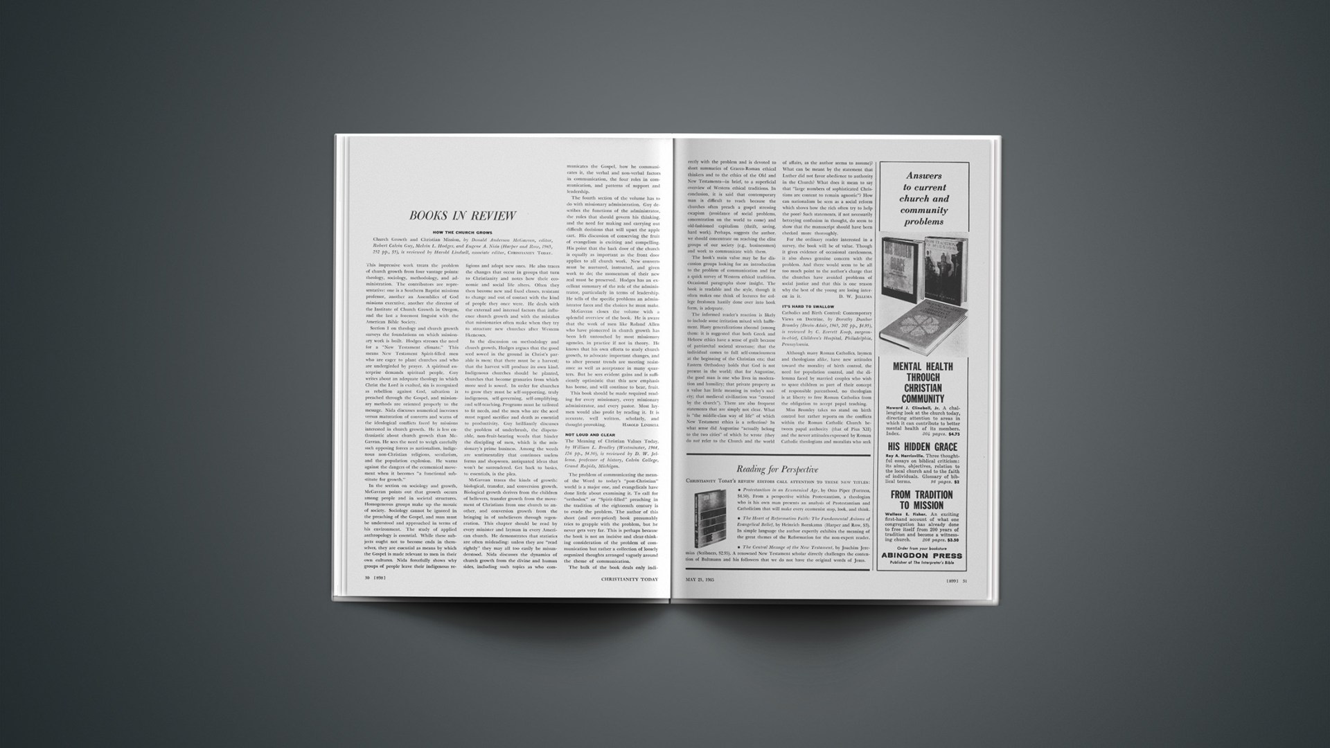 Church Growth and Christian Mission, by Donald Anderson McGavran, editor, Robert Calvin Guy, Melvin L. Hodges, and Eugene A. Nida (Harper and Row, 1965, 252 pp., $5), is reviewed by Harold Lindsell, associate editor, CHRISTIANITY TODAY.