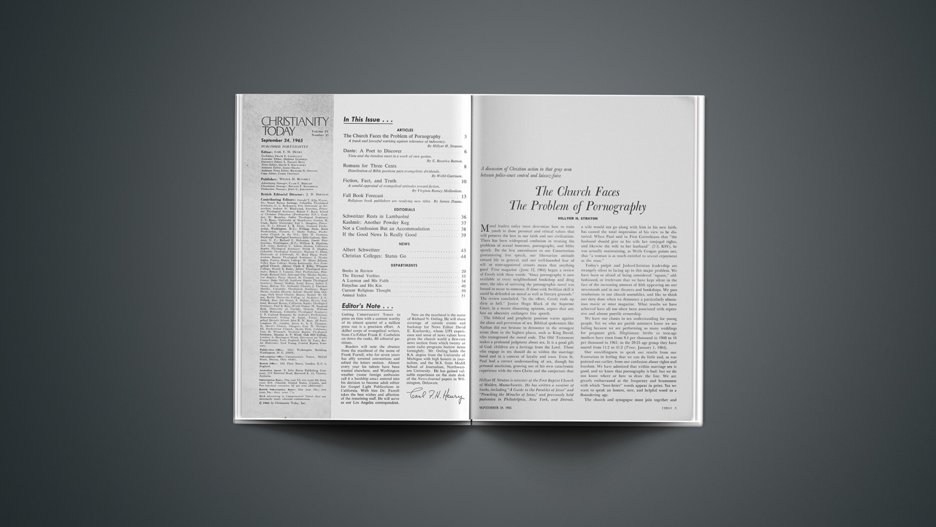 New on the masthead is the name of Richard N. Ostling. He will share coverage of outside events and backstop for News Editor David E. Kucharsky, whose UPI experience and sense of news values have given the church world a first-rate news section from which twenty or more radio programs borrow items fortnightly. Mr. Ostling holds the B.A. degree from the University of Michigan with high honors in journalism, and the M.S. from Medill School of Journalism, Northwestern University. He has gained valuable experience on the state desk of the News-Journal papers in Wilmington, Delaware.