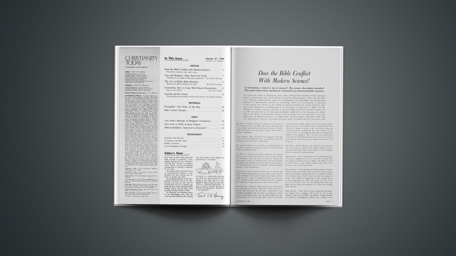 Ever since we first asked cartoonist John Lawing to provide a fortnightly drawing for the “Eutychus and His Kin” section of CHRISTIANITY TODAY, we have considered inviting him to become a member of our staff.