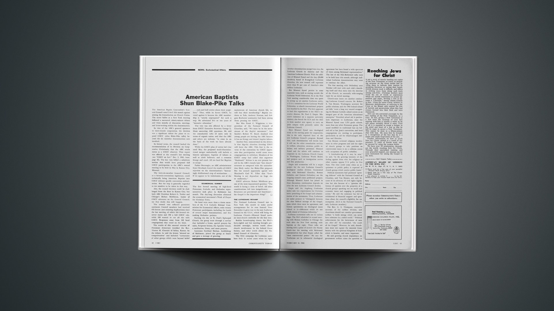 The American Baptist Convention’s General Council voted 2-to-1 this month against joining the Consultation on Church Union. The secret ballot at a New York meeting followed a measured, ninety-minute debate and three months of discussion, meetings, and letter-writing within the denomination.