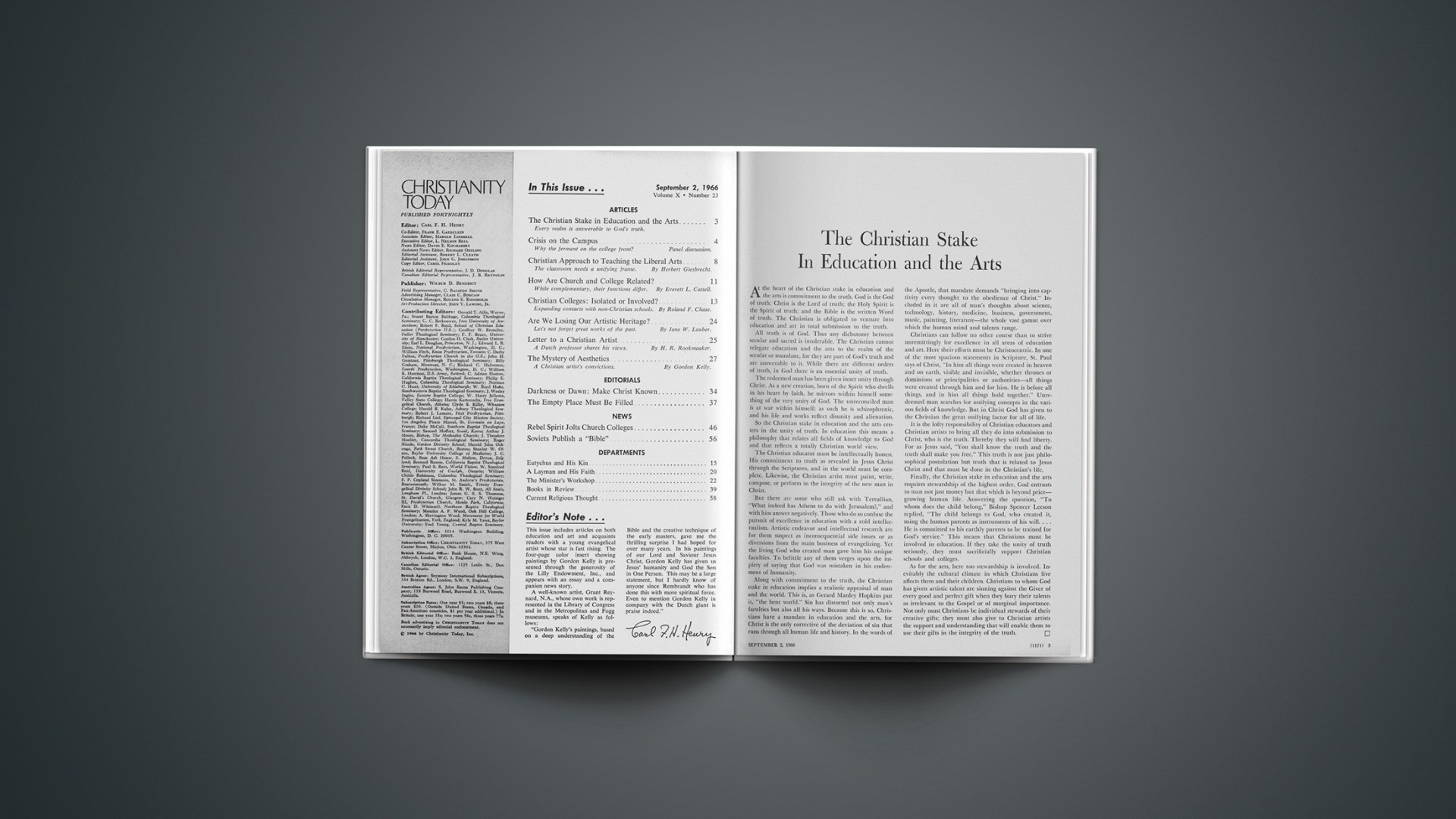 At the heart of the Christian stake in education and the arts is commitment to the truth. God is the God of truth; Christ is the Lord of truth; the Holy Spirit is the Spirit of truth; and the Bible is the written Word of truth. The Christian is obligated to venture into education and art in total submission to the truth.