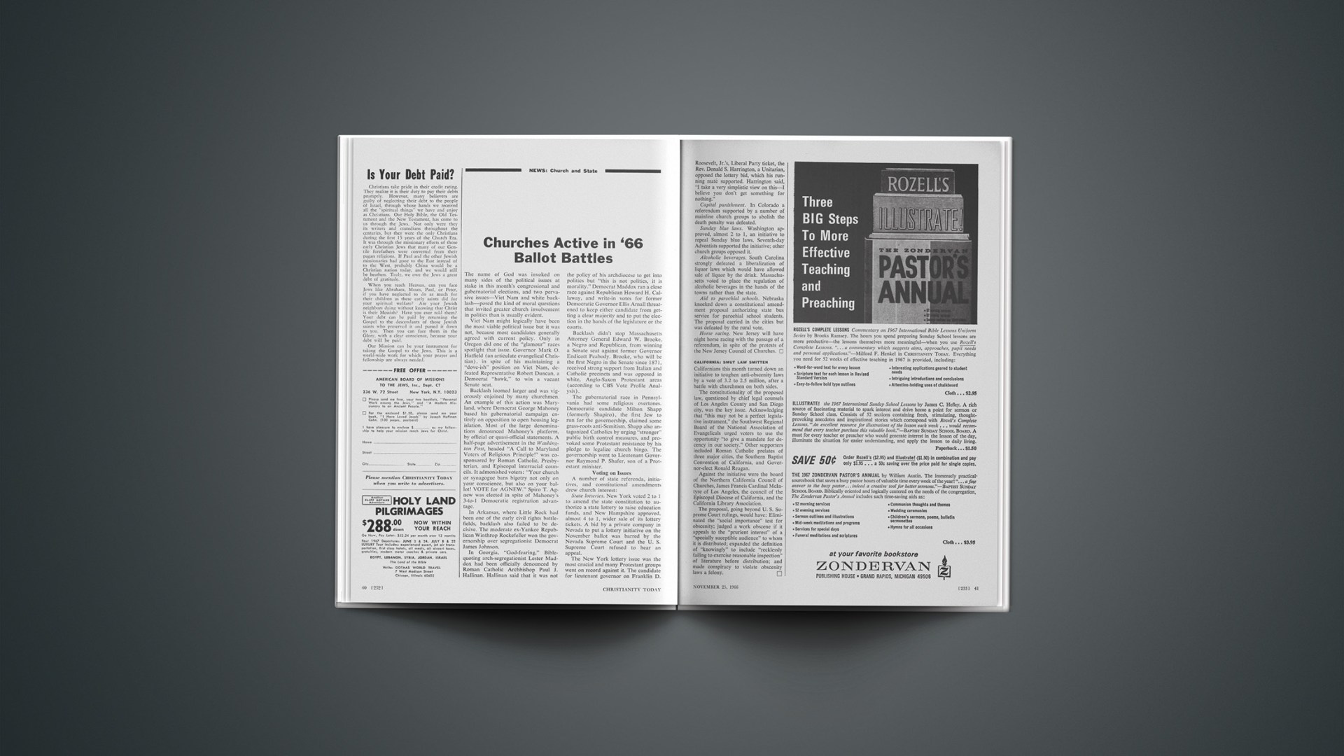 The name of God was invoked on many sides of the political issues at stake in this month’s congressional and gubernatorial elections, and two pervasive issues—Viet Nam and white backlash—posed the kind of moral questions that invited greater church involvement in politics than is usually evident.