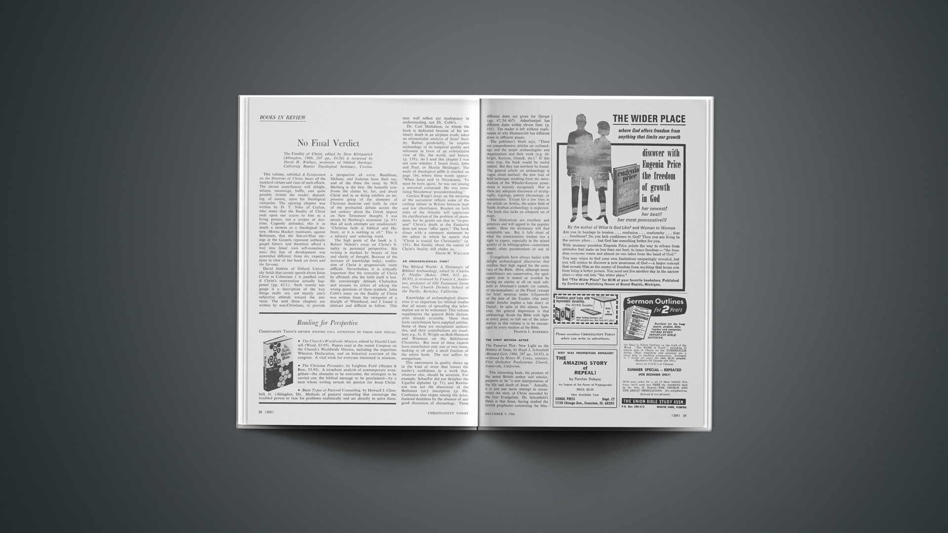 The Finality of Christ, edited by Dow Kirkpatrick (Abingdon, 1966, 207 pp., $4.50) is reviewed by David H. Wallace, professor of biblical theology, California Baptist Theological Seminary, Covina.
