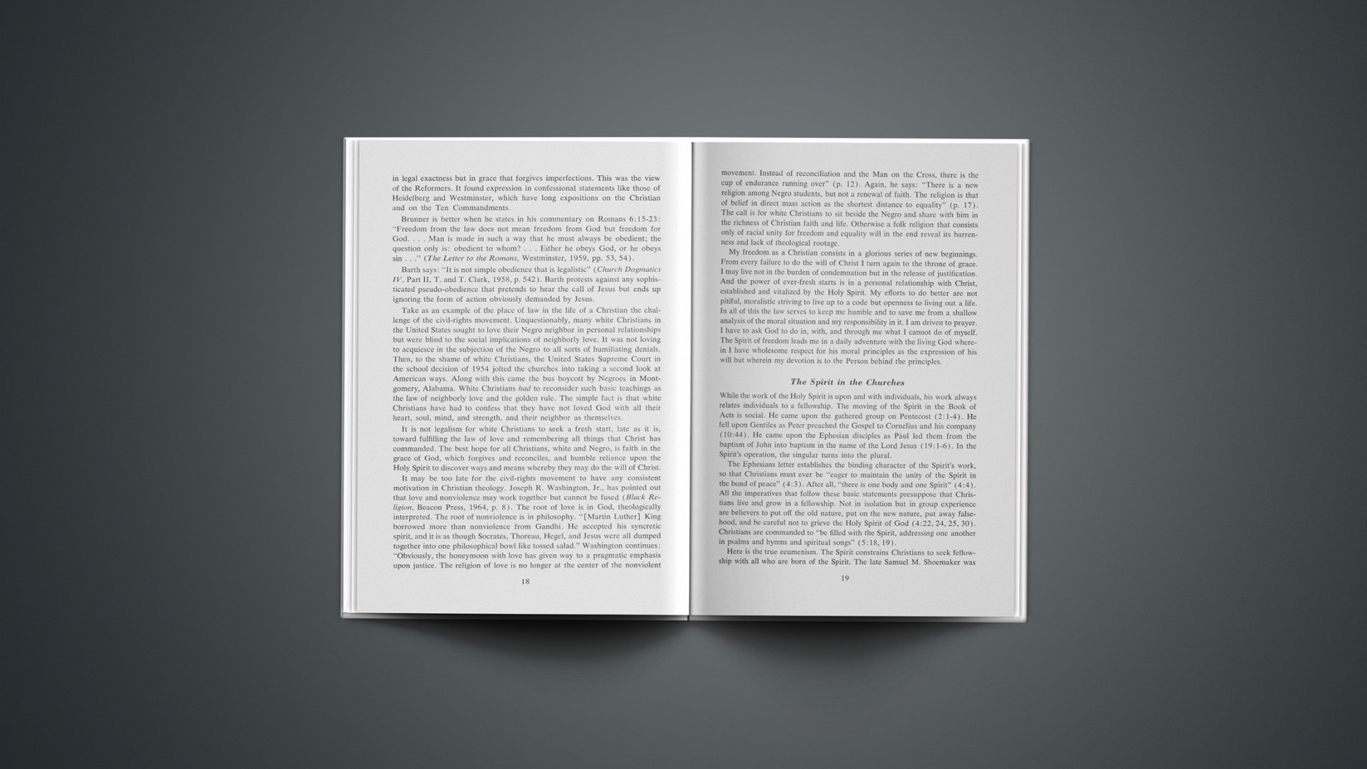 Among personal viewpoints expressed, none is more to the point than that of the Rev. Louis Johnson, pastor of Friendship Baptist Church in Detroit. “We need a new boldness in the preaching of the Gospel, and a new emphasis on love to counteract the hate proclaimed by militant black-power advocates like Stokely Carmichael and Rap Brown,” he says. But Johnson also pleads for evangelical churches to turn their eyes back to the city and to attack the problems of inadequate housing, education, and employment. “Churches have been closing down Christian centers in the inner city while the government is opening them up,” he said. He is critical of denominational programs that emphasize social action to the point that the presentation of the Gospel is either shallow or non-existent.