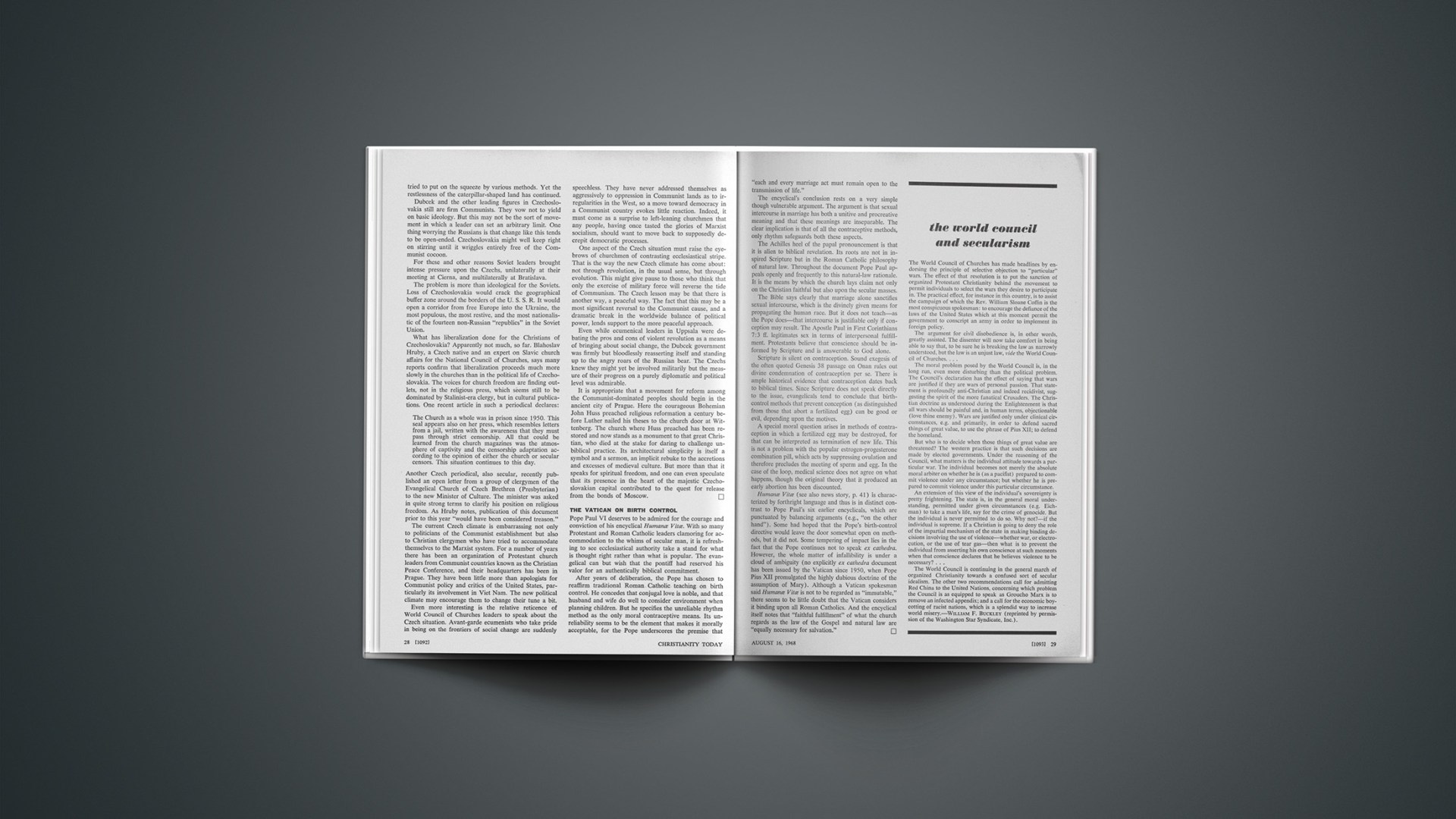 At any rate, the 15,000,000 Czechs have been becoming increasingly uneasy over Communist restraints. In January, Stalinist ruler Antonin Novotny was deposed. Under his successor, Alexander Dubcek, there has been some liberalization, and something resembling a free press has emerged. One astute evangelical observer on the European scene declares, “If Czechoslovakia will manage to carry through this phenomenal step of independence, Communism will not be the same in Europe again.”