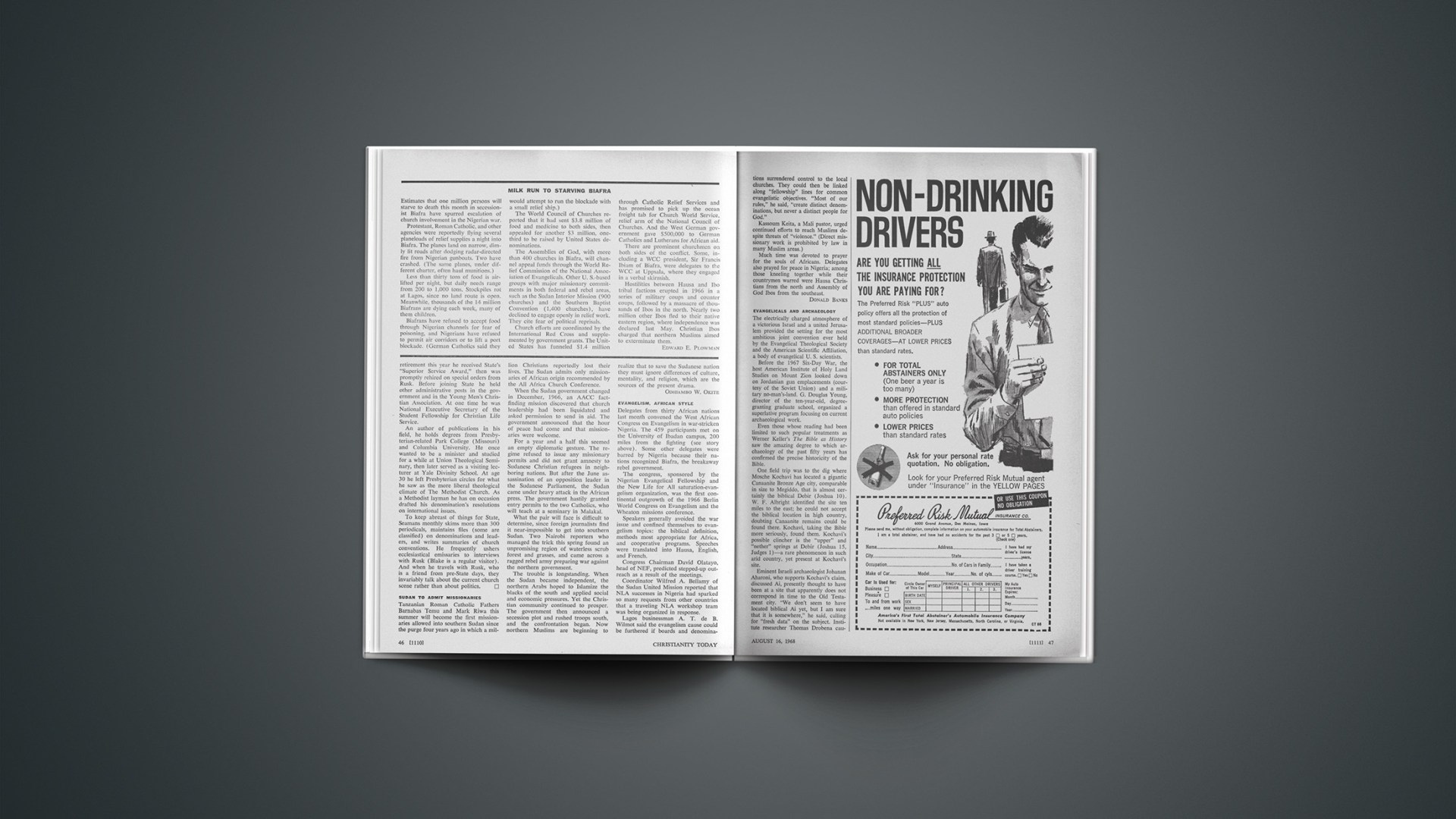 A crusade led by Ford Philpot in Kinshasa, capital of the Congo, drew estimated attendance of 200,000, with 25,000 public commitments to Christ. The meetings capped a two-year evangelism program of the Congo Protestant Council.
